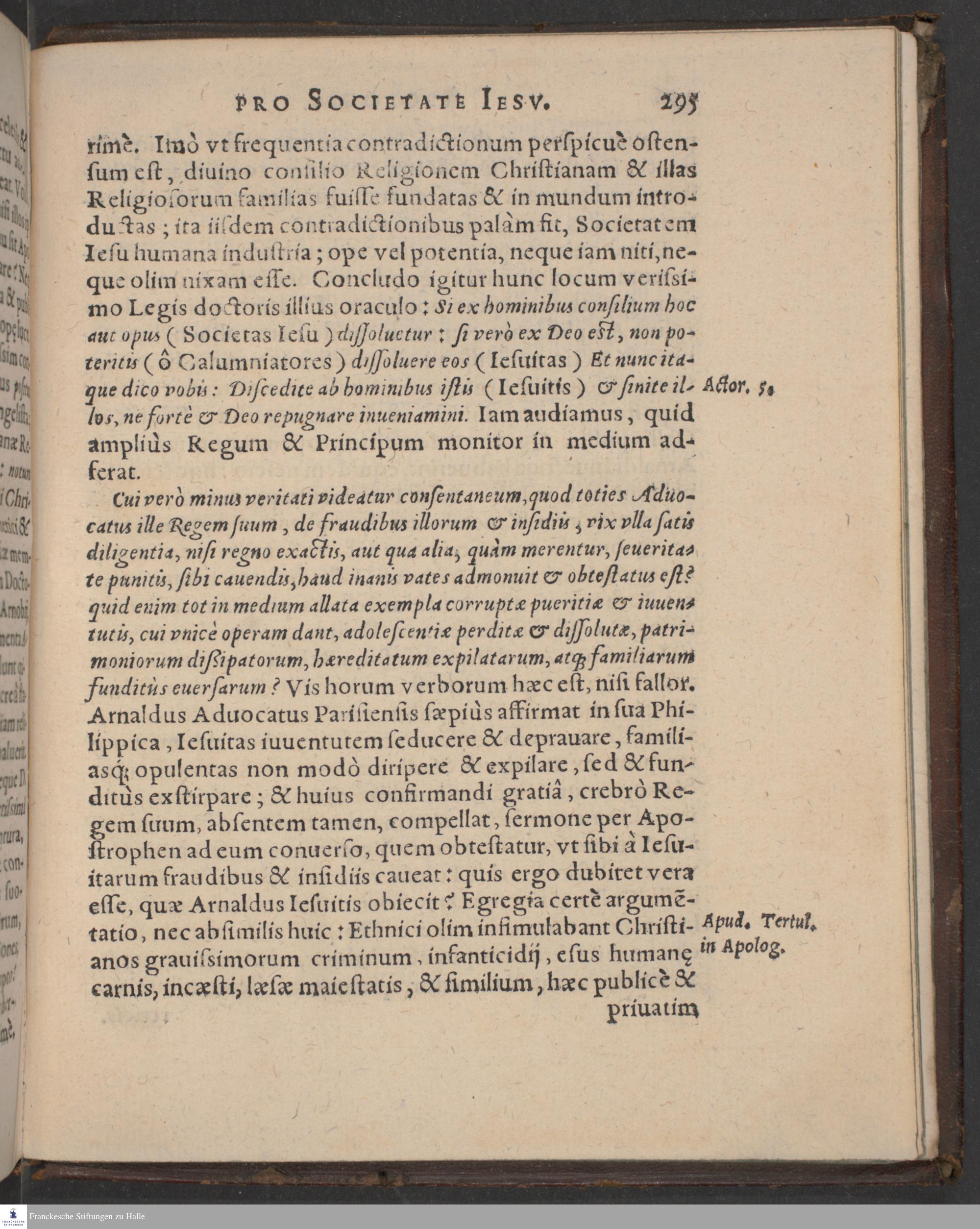 APOLOGIA || FRANCISCI || MONTANI PRO SOCIETATE || IESV IN GALLIA. || CONTRA ANTONII ARNALDI || Aduocati Parisiensis Philippicam. || Ex Gallico in Latinum || translata. || Accessit Appendix ex Historia de facto Ioannis || Schattelii, studiosi Parisiensis. ||
