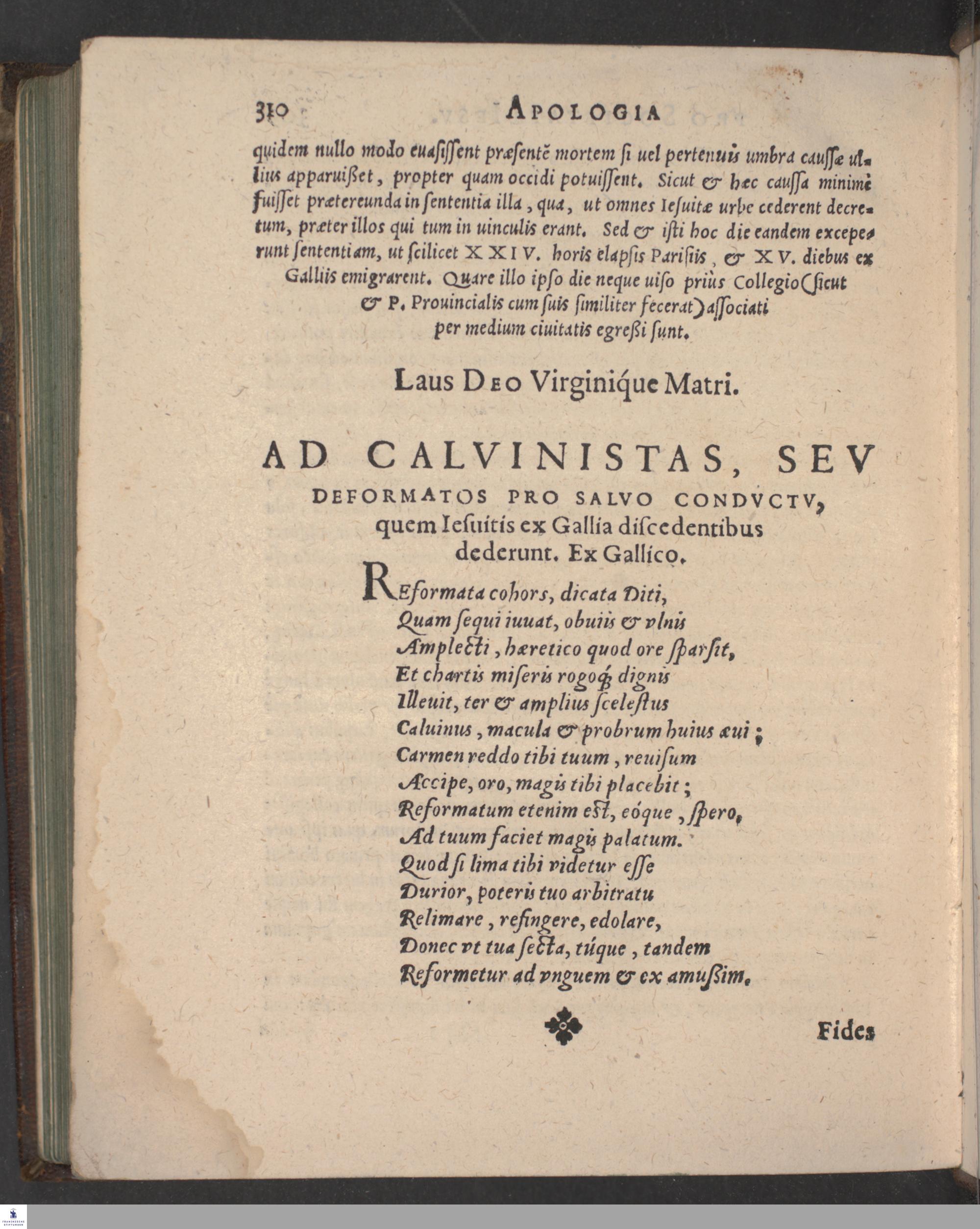 APOLOGIA || FRANCISCI || MONTANI PRO SOCIETATE || IESV IN GALLIA. || CONTRA ANTONII ARNALDI || Aduocati Parisiensis Philippicam. || Ex Gallico in Latinum || translata. || Accessit Appendix ex Historia de facto Ioannis || Schattelii, studiosi Parisiensis. ||