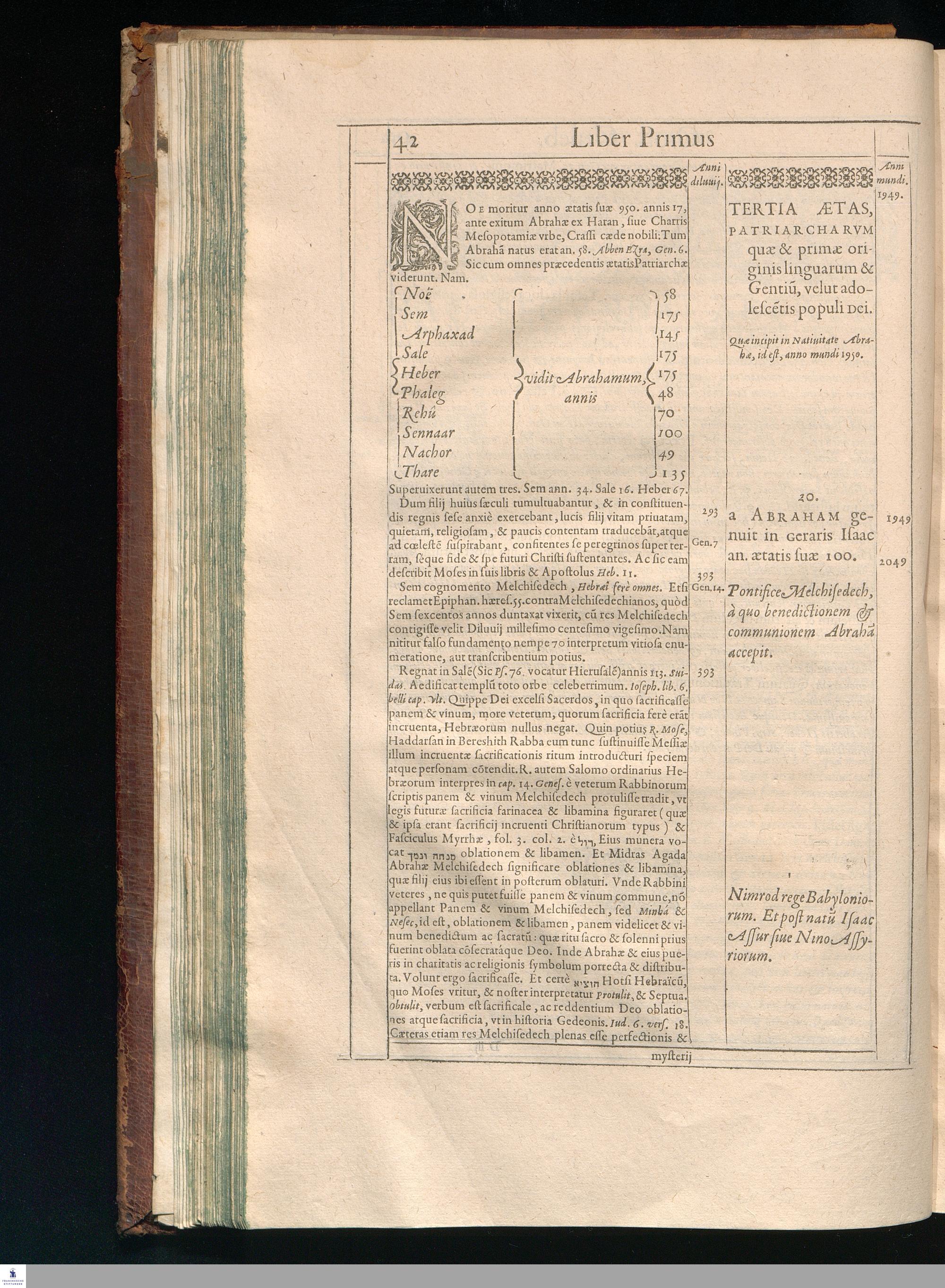 GILB. GENEBRARDI || THEOLOGI PARISIENSIS || DIVINARVM HEBRAICARVMQVE || LITERARVM PROFESSORIS REGII || Chronographiæ Libri quatuor. || PRIORES DVO SVNT DE REBVS VETERIS || populi, & præcipuis quatuor millium annorum gestis. || Posteriores, è D. Arnaldi Pontaci Vasatensis Episcopi Chronographia || aucti, recentes historias reliquorum annorum complectuntur. || Vniuersæ historiæ speculum, in Ecclesiæ præsertim sæculo, à mendaciis, malus, || imposturis Centuriatorum, aliorúmque hæreticorum detersum. || Emendatum, Adauctum etaim, & collocupletatum cum Appendice ad A. D. || M. D C. Iubilæum Maximum & sæcularem. || Per PETRVM VICTOREM PALMAM CAIETANVM I. V. D. & Regium || linguarum Orientalium Lectorem & anagnosten. || Subiuncti sunt libri Hebræorum Chronologici eodem || interprete Genebrardo. ||