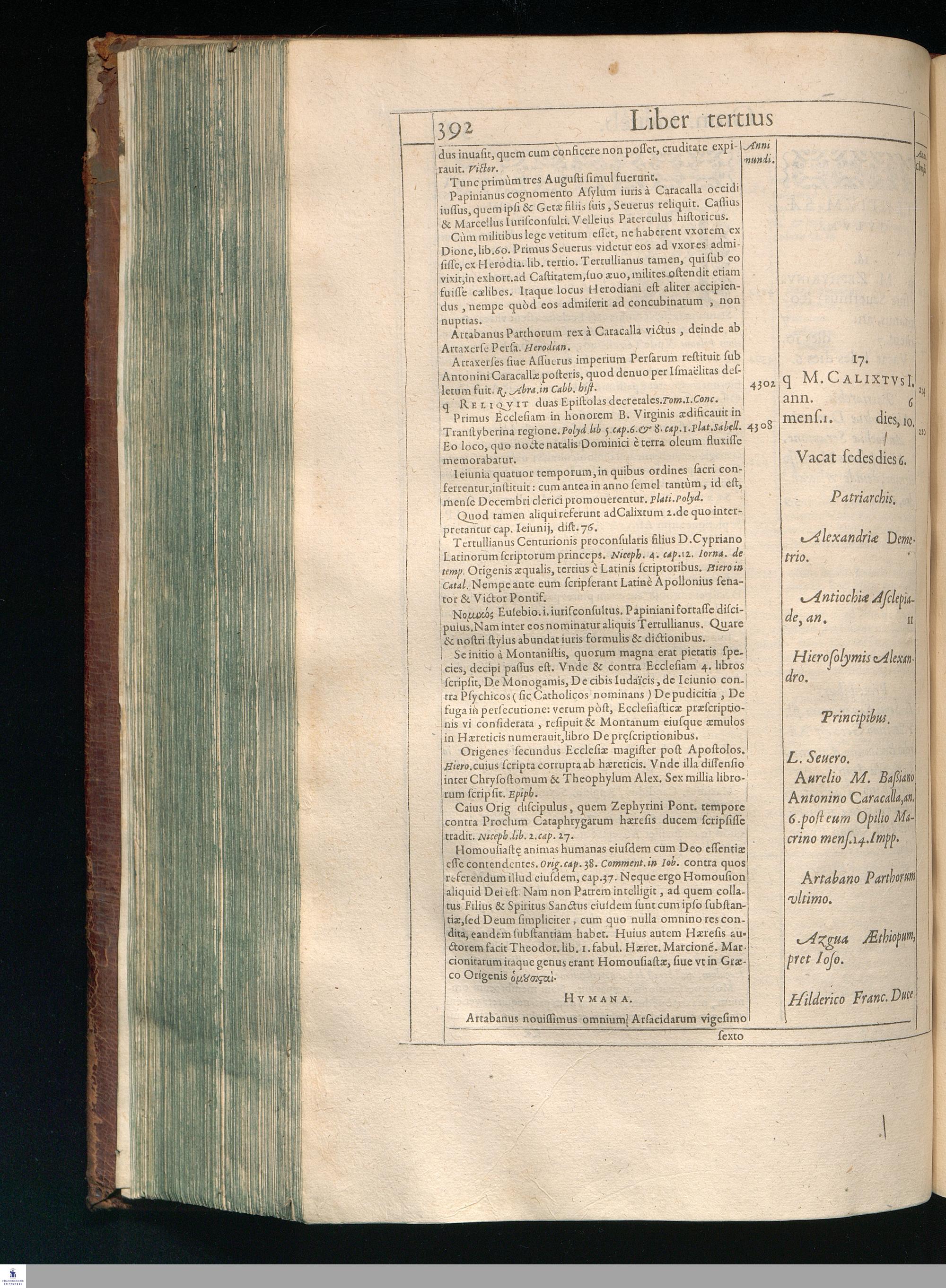 GILB. GENEBRARDI || THEOLOGI PARISIENSIS || DIVINARVM HEBRAICARVMQVE || LITERARVM PROFESSORIS REGII || Chronographiæ Libri quatuor. || PRIORES DVO SVNT DE REBVS VETERIS || populi, & præcipuis quatuor millium annorum gestis. || Posteriores, è D. Arnaldi Pontaci Vasatensis Episcopi Chronographia || aucti, recentes historias reliquorum annorum complectuntur. || Vniuersæ historiæ speculum, in Ecclesiæ præsertim sæculo, à mendaciis, malus, || imposturis Centuriatorum, aliorúmque hæreticorum detersum. || Emendatum, Adauctum etaim, & collocupletatum cum Appendice ad A. D. || M. D C. Iubilæum Maximum & sæcularem. || Per PETRVM VICTOREM PALMAM CAIETANVM I. V. D. & Regium || linguarum Orientalium Lectorem & anagnosten. || Subiuncti sunt libri Hebræorum Chronologici eodem || interprete Genebrardo. ||
