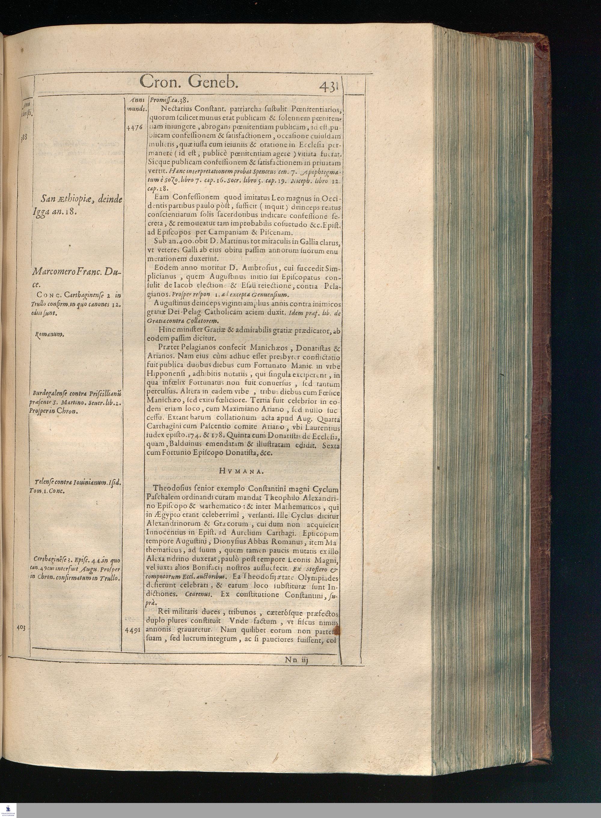 GILB. GENEBRARDI || THEOLOGI PARISIENSIS || DIVINARVM HEBRAICARVMQVE || LITERARVM PROFESSORIS REGII || Chronographiæ Libri quatuor. || PRIORES DVO SVNT DE REBVS VETERIS || populi, & præcipuis quatuor millium annorum gestis. || Posteriores, è D. Arnaldi Pontaci Vasatensis Episcopi Chronographia || aucti, recentes historias reliquorum annorum complectuntur. || Vniuersæ historiæ speculum, in Ecclesiæ præsertim sæculo, à mendaciis, malus, || imposturis Centuriatorum, aliorúmque hæreticorum detersum. || Emendatum, Adauctum etaim, & collocupletatum cum Appendice ad A. D. || M. D C. Iubilæum Maximum & sæcularem. || Per PETRVM VICTOREM PALMAM CAIETANVM I. V. D. & Regium || linguarum Orientalium Lectorem & anagnosten. || Subiuncti sunt libri Hebræorum Chronologici eodem || interprete Genebrardo. ||
