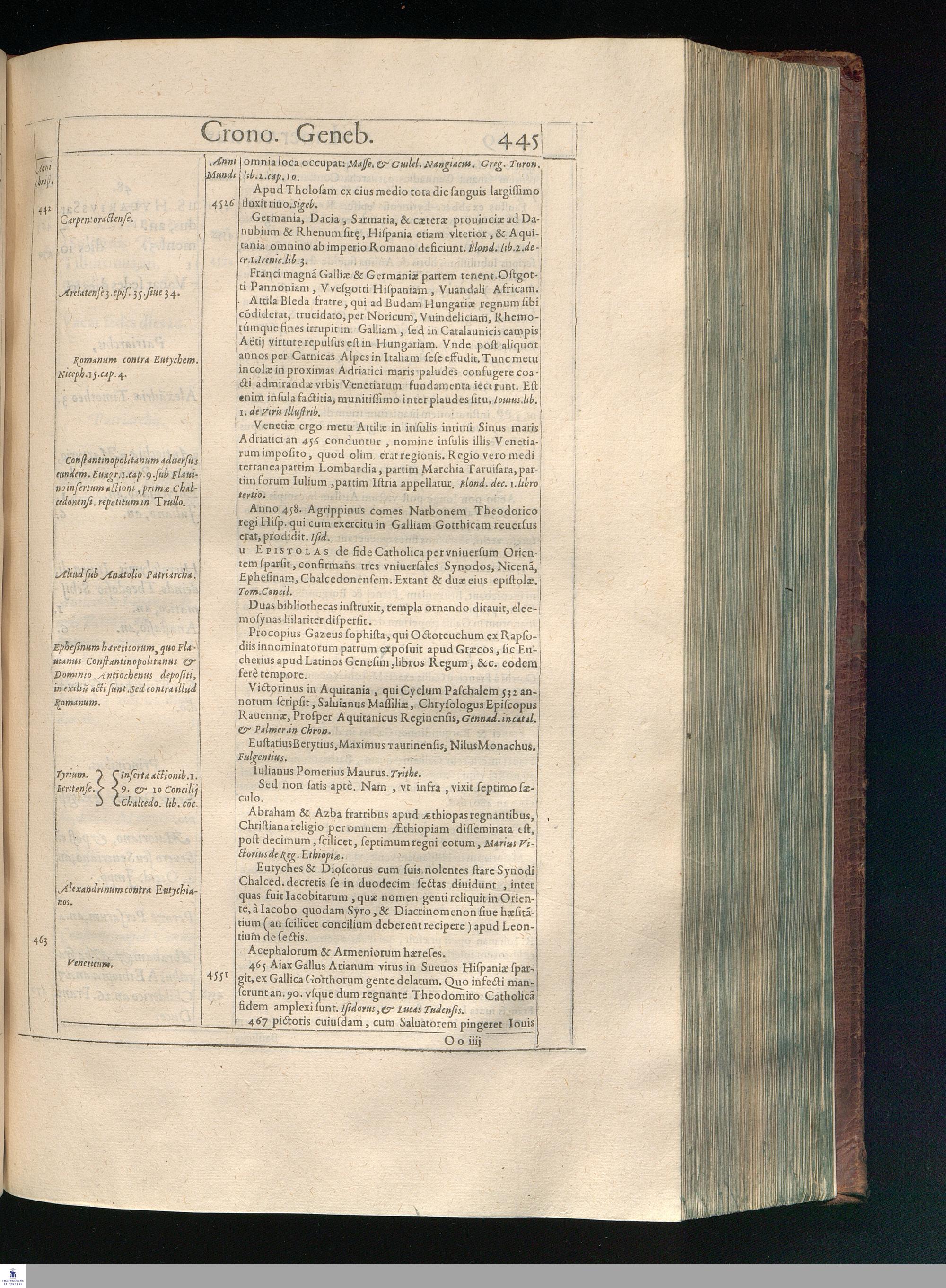 GILB. GENEBRARDI || THEOLOGI PARISIENSIS || DIVINARVM HEBRAICARVMQVE || LITERARVM PROFESSORIS REGII || Chronographiæ Libri quatuor. || PRIORES DVO SVNT DE REBVS VETERIS || populi, & præcipuis quatuor millium annorum gestis. || Posteriores, è D. Arnaldi Pontaci Vasatensis Episcopi Chronographia || aucti, recentes historias reliquorum annorum complectuntur. || Vniuersæ historiæ speculum, in Ecclesiæ præsertim sæculo, à mendaciis, malus, || imposturis Centuriatorum, aliorúmque hæreticorum detersum. || Emendatum, Adauctum etaim, & collocupletatum cum Appendice ad A. D. || M. D C. Iubilæum Maximum & sæcularem. || Per PETRVM VICTOREM PALMAM CAIETANVM I. V. D. & Regium || linguarum Orientalium Lectorem & anagnosten. || Subiuncti sunt libri Hebræorum Chronologici eodem || interprete Genebrardo. ||