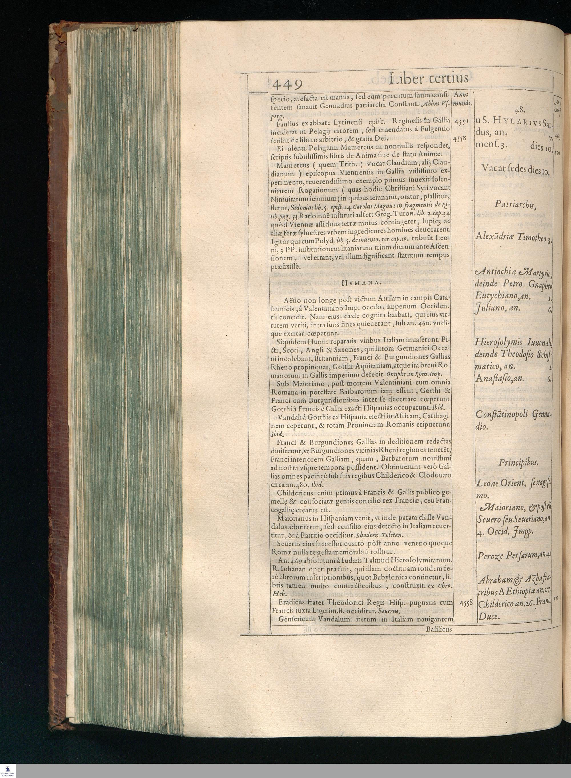 GILB. GENEBRARDI || THEOLOGI PARISIENSIS || DIVINARVM HEBRAICARVMQVE || LITERARVM PROFESSORIS REGII || Chronographiæ Libri quatuor. || PRIORES DVO SVNT DE REBVS VETERIS || populi, & præcipuis quatuor millium annorum gestis. || Posteriores, è D. Arnaldi Pontaci Vasatensis Episcopi Chronographia || aucti, recentes historias reliquorum annorum complectuntur. || Vniuersæ historiæ speculum, in Ecclesiæ præsertim sæculo, à mendaciis, malus, || imposturis Centuriatorum, aliorúmque hæreticorum detersum. || Emendatum, Adauctum etaim, & collocupletatum cum Appendice ad A. D. || M. D C. Iubilæum Maximum & sæcularem. || Per PETRVM VICTOREM PALMAM CAIETANVM I. V. D. & Regium || linguarum Orientalium Lectorem & anagnosten. || Subiuncti sunt libri Hebræorum Chronologici eodem || interprete Genebrardo. ||