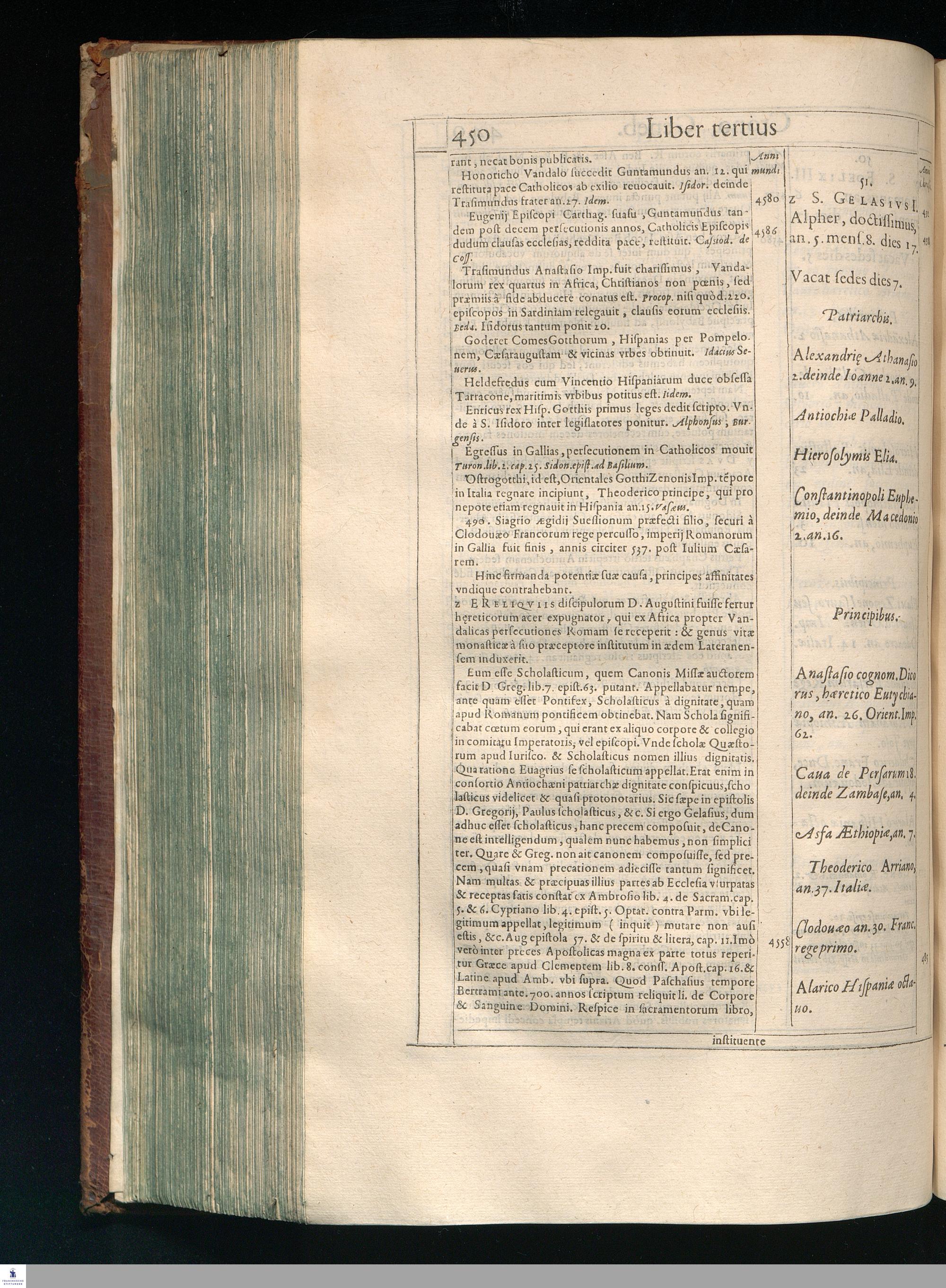 GILB. GENEBRARDI || THEOLOGI PARISIENSIS || DIVINARVM HEBRAICARVMQVE || LITERARVM PROFESSORIS REGII || Chronographiæ Libri quatuor. || PRIORES DVO SVNT DE REBVS VETERIS || populi, & præcipuis quatuor millium annorum gestis. || Posteriores, è D. Arnaldi Pontaci Vasatensis Episcopi Chronographia || aucti, recentes historias reliquorum annorum complectuntur. || Vniuersæ historiæ speculum, in Ecclesiæ præsertim sæculo, à mendaciis, malus, || imposturis Centuriatorum, aliorúmque hæreticorum detersum. || Emendatum, Adauctum etaim, & collocupletatum cum Appendice ad A. D. || M. D C. Iubilæum Maximum & sæcularem. || Per PETRVM VICTOREM PALMAM CAIETANVM I. V. D. & Regium || linguarum Orientalium Lectorem & anagnosten. || Subiuncti sunt libri Hebræorum Chronologici eodem || interprete Genebrardo. ||