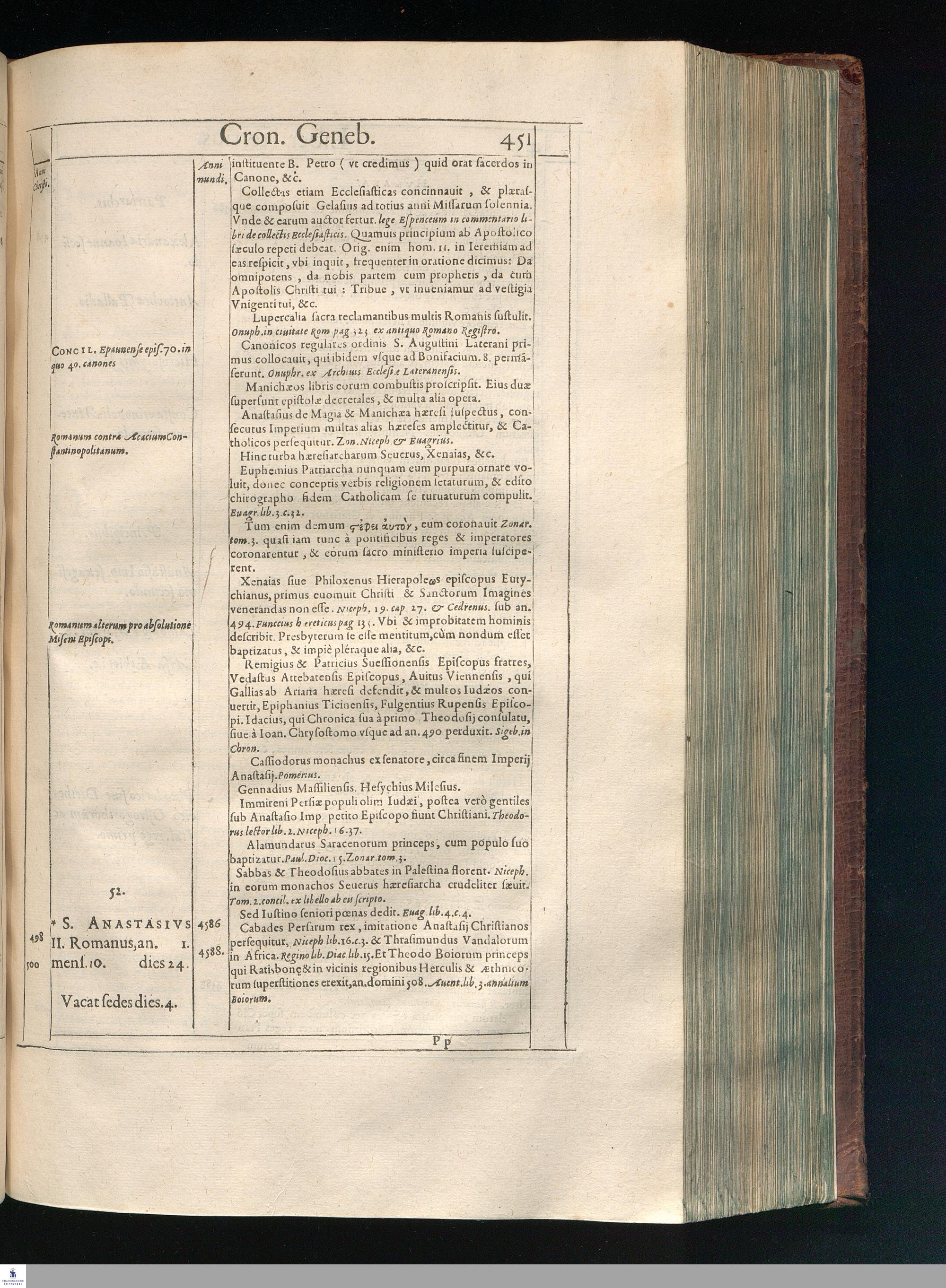 GILB. GENEBRARDI || THEOLOGI PARISIENSIS || DIVINARVM HEBRAICARVMQVE || LITERARVM PROFESSORIS REGII || Chronographiæ Libri quatuor. || PRIORES DVO SVNT DE REBVS VETERIS || populi, & præcipuis quatuor millium annorum gestis. || Posteriores, è D. Arnaldi Pontaci Vasatensis Episcopi Chronographia || aucti, recentes historias reliquorum annorum complectuntur. || Vniuersæ historiæ speculum, in Ecclesiæ præsertim sæculo, à mendaciis, malus, || imposturis Centuriatorum, aliorúmque hæreticorum detersum. || Emendatum, Adauctum etaim, & collocupletatum cum Appendice ad A. D. || M. D C. Iubilæum Maximum & sæcularem. || Per PETRVM VICTOREM PALMAM CAIETANVM I. V. D. & Regium || linguarum Orientalium Lectorem & anagnosten. || Subiuncti sunt libri Hebræorum Chronologici eodem || interprete Genebrardo. ||