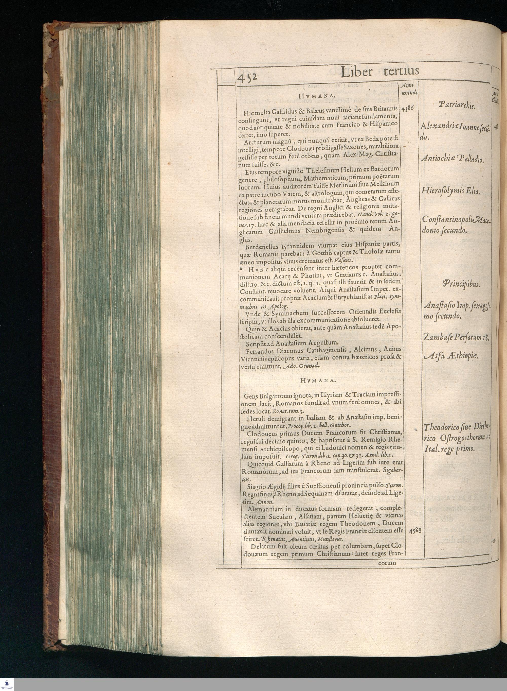 GILB. GENEBRARDI || THEOLOGI PARISIENSIS || DIVINARVM HEBRAICARVMQVE || LITERARVM PROFESSORIS REGII || Chronographiæ Libri quatuor. || PRIORES DVO SVNT DE REBVS VETERIS || populi, & præcipuis quatuor millium annorum gestis. || Posteriores, è D. Arnaldi Pontaci Vasatensis Episcopi Chronographia || aucti, recentes historias reliquorum annorum complectuntur. || Vniuersæ historiæ speculum, in Ecclesiæ præsertim sæculo, à mendaciis, malus, || imposturis Centuriatorum, aliorúmque hæreticorum detersum. || Emendatum, Adauctum etaim, & collocupletatum cum Appendice ad A. D. || M. D C. Iubilæum Maximum & sæcularem. || Per PETRVM VICTOREM PALMAM CAIETANVM I. V. D. & Regium || linguarum Orientalium Lectorem & anagnosten. || Subiuncti sunt libri Hebræorum Chronologici eodem || interprete Genebrardo. ||