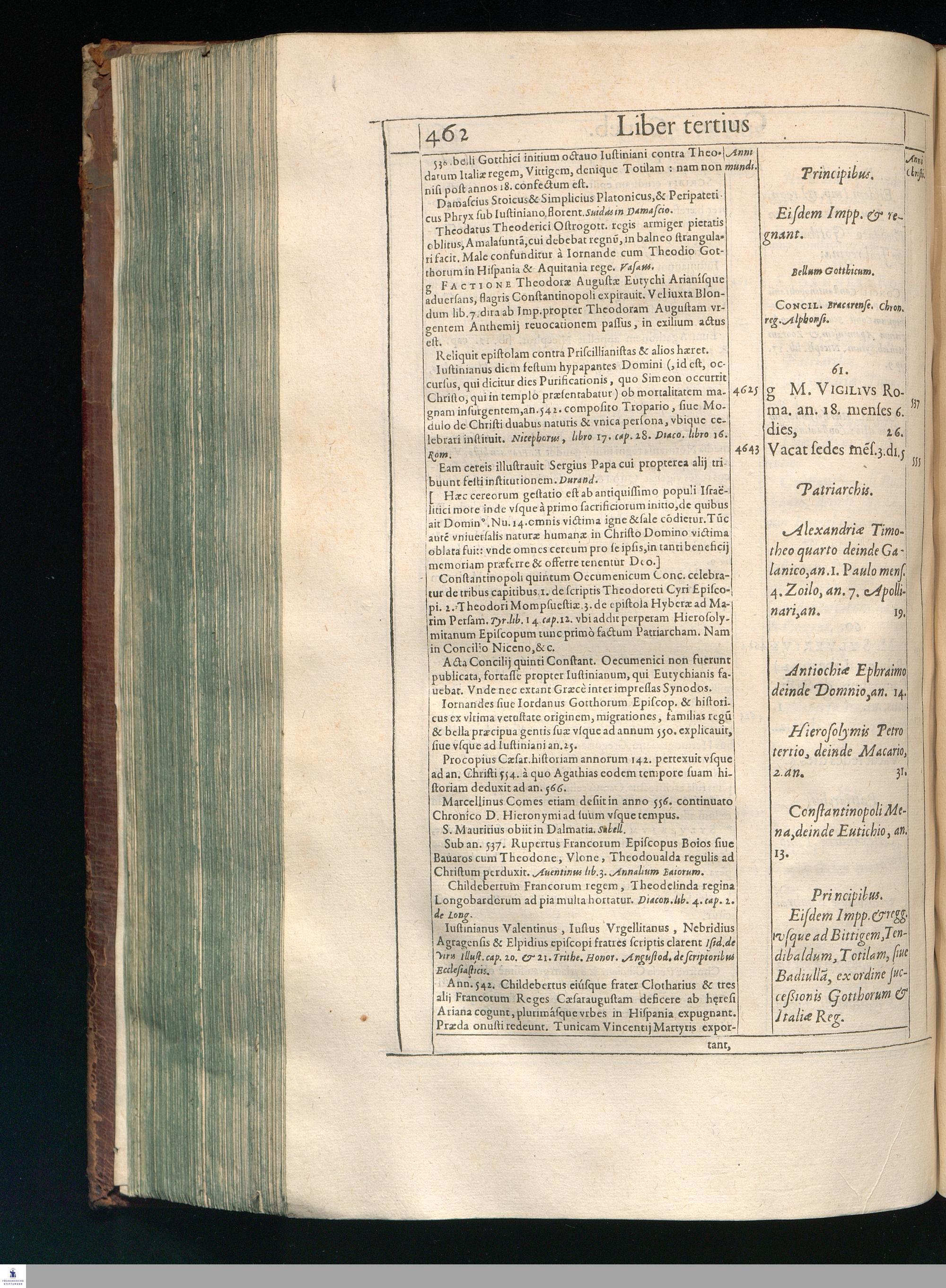 GILB. GENEBRARDI || THEOLOGI PARISIENSIS || DIVINARVM HEBRAICARVMQVE || LITERARVM PROFESSORIS REGII || Chronographiæ Libri quatuor. || PRIORES DVO SVNT DE REBVS VETERIS || populi, & præcipuis quatuor millium annorum gestis. || Posteriores, è D. Arnaldi Pontaci Vasatensis Episcopi Chronographia || aucti, recentes historias reliquorum annorum complectuntur. || Vniuersæ historiæ speculum, in Ecclesiæ præsertim sæculo, à mendaciis, malus, || imposturis Centuriatorum, aliorúmque hæreticorum detersum. || Emendatum, Adauctum etaim, & collocupletatum cum Appendice ad A. D. || M. D C. Iubilæum Maximum & sæcularem. || Per PETRVM VICTOREM PALMAM CAIETANVM I. V. D. & Regium || linguarum Orientalium Lectorem & anagnosten. || Subiuncti sunt libri Hebræorum Chronologici eodem || interprete Genebrardo. ||
