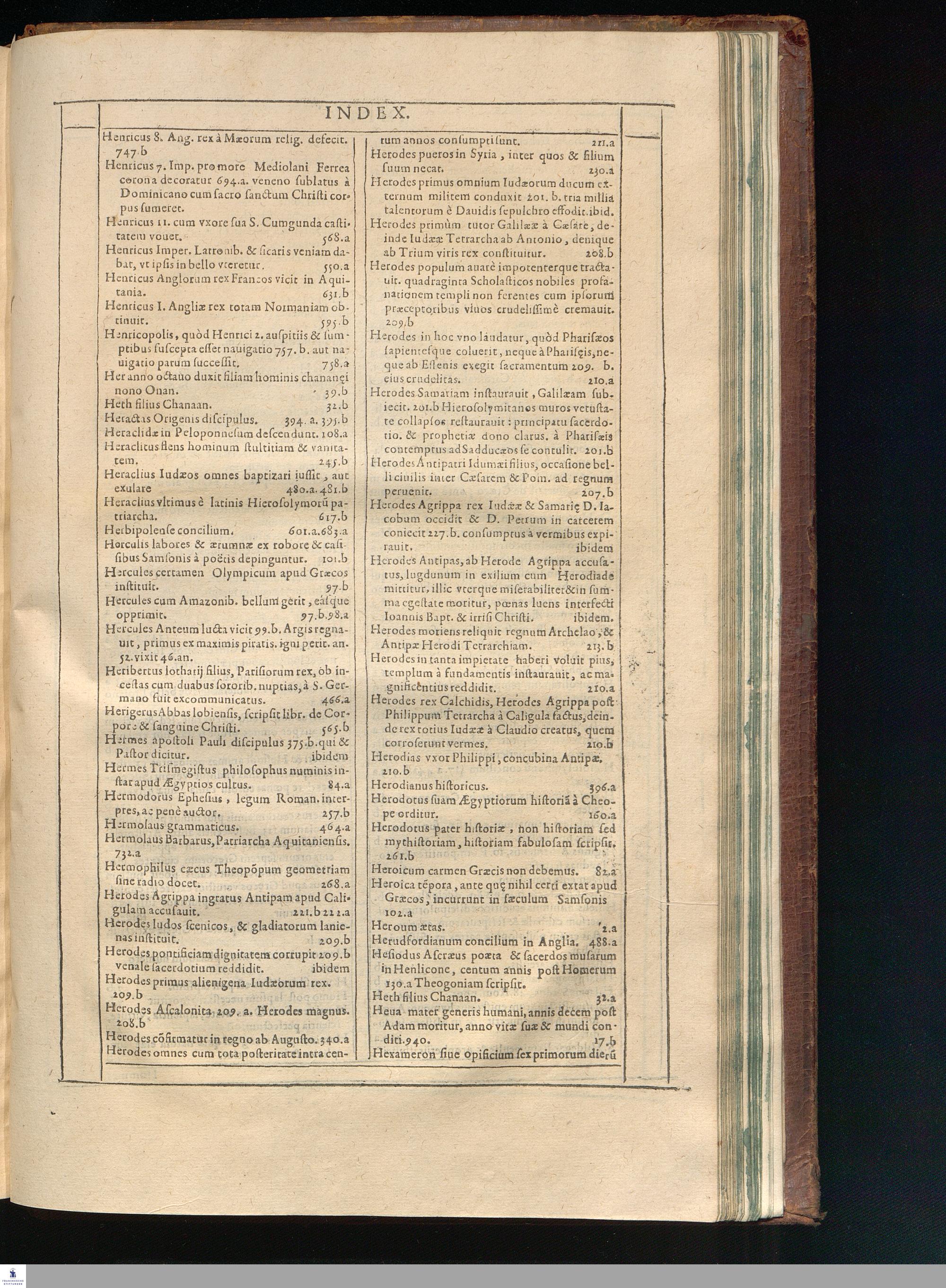 GILB. GENEBRARDI || THEOLOGI PARISIENSIS || DIVINARVM HEBRAICARVMQVE || LITERARVM PROFESSORIS REGII || Chronographiæ Libri quatuor. || PRIORES DVO SVNT DE REBVS VETERIS || populi, & præcipuis quatuor millium annorum gestis. || Posteriores, è D. Arnaldi Pontaci Vasatensis Episcopi Chronographia || aucti, recentes historias reliquorum annorum complectuntur. || Vniuersæ historiæ speculum, in Ecclesiæ præsertim sæculo, à mendaciis, malus, || imposturis Centuriatorum, aliorúmque hæreticorum detersum. || Emendatum, Adauctum etaim, & collocupletatum cum Appendice ad A. D. || M. D C. Iubilæum Maximum & sæcularem. || Per PETRVM VICTOREM PALMAM CAIETANVM I. V. D. & Regium || linguarum Orientalium Lectorem & anagnosten. || Subiuncti sunt libri Hebræorum Chronologici eodem || interprete Genebrardo. ||