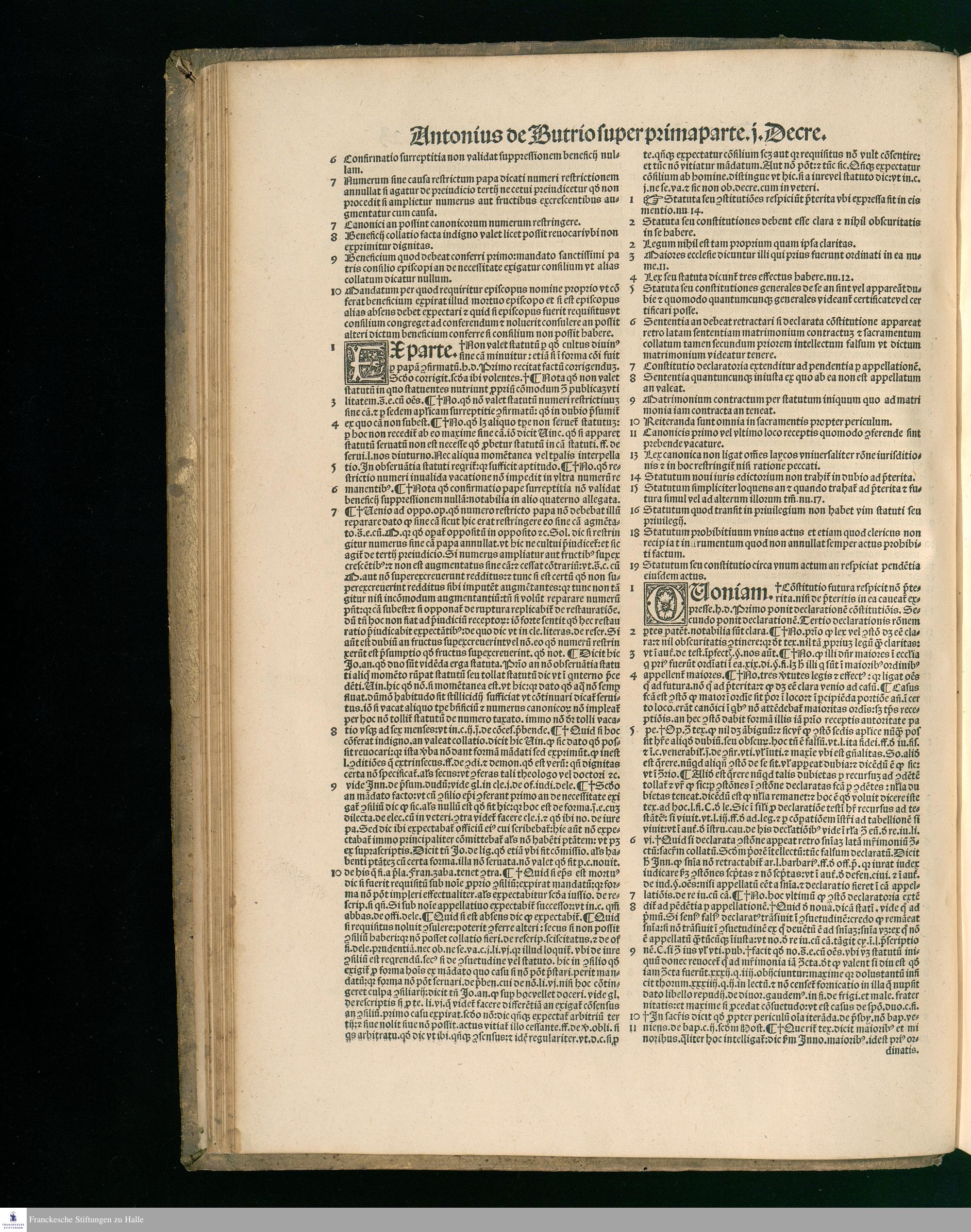 P. 1,1%_1111 1532 (1532) ... || PARS PRIMA SV=||PER PRIMO. || CLARISSIMI IVRIS || VTRIVSQVE INTERPRETIS DO=||mini Antonij de Butrio perutilis Lectura super pri=||ma parte primi Decretaliu[m] accuratissime excusa, || ... ||