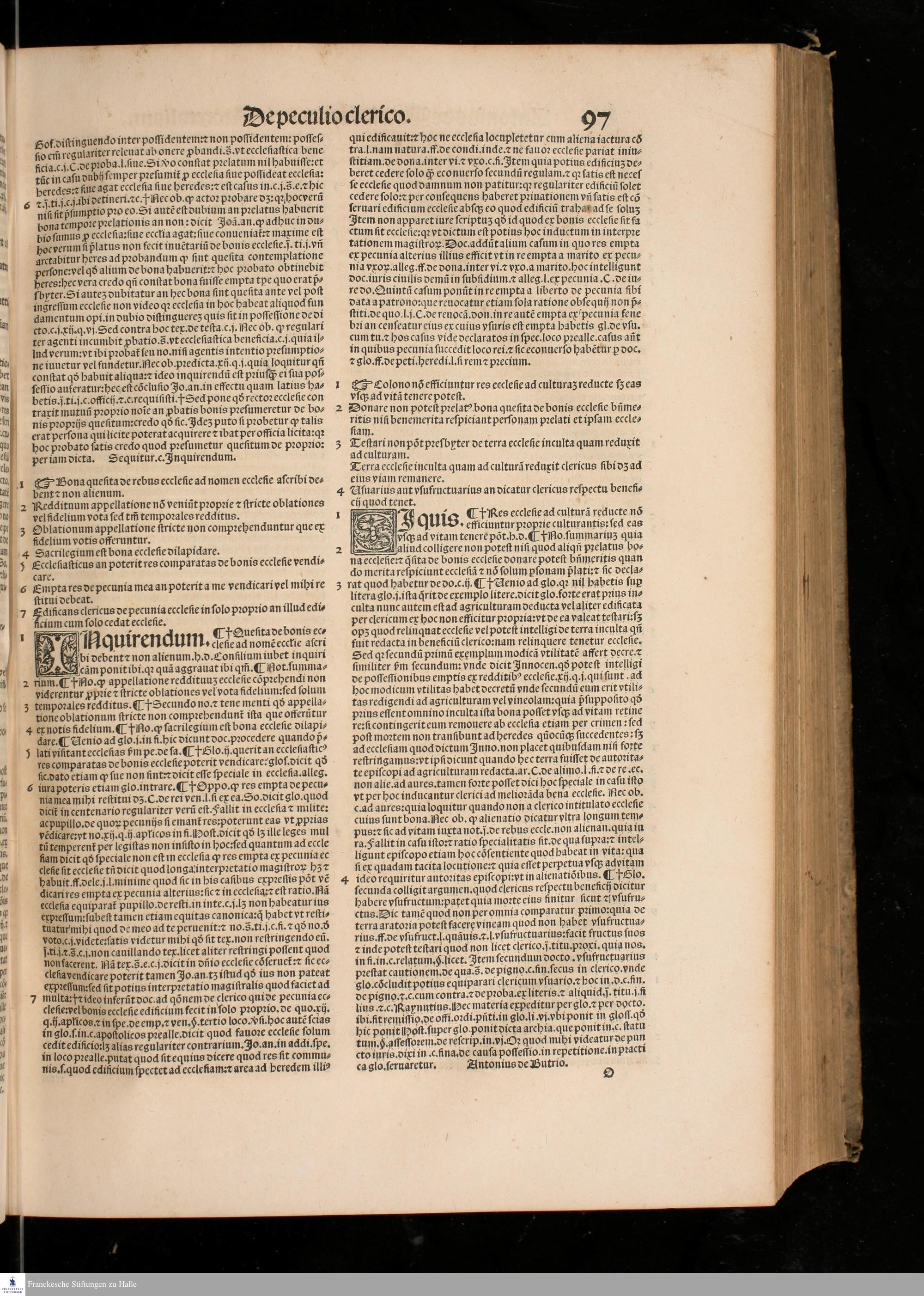 P. 3 (1532) ... || SVPER TERTIO DECRE=||TALIVM, || CLARISSIMI IVRIS || VTRIVSQVE DOCTORIS DOMINI || Antonij de Butrio Lectura super Tertio Decre=||talium accuratissime excusa, ... || ... ||