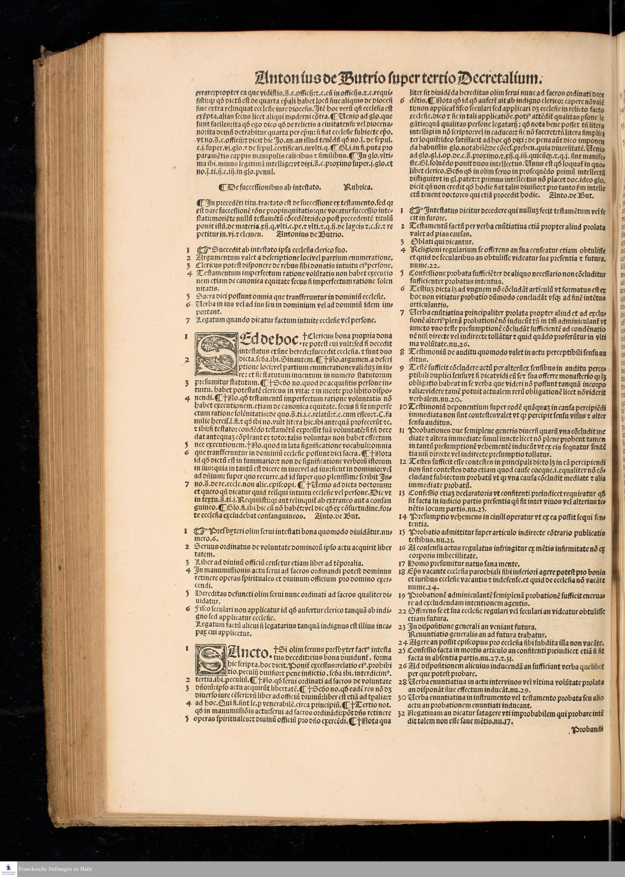 P. 3 (1532) ... || SVPER TERTIO DECRE=||TALIVM, || CLARISSIMI IVRIS || VTRIVSQVE DOCTORIS DOMINI || Antonij de Butrio Lectura super Tertio Decre=||talium accuratissime excusa, ... || ... ||