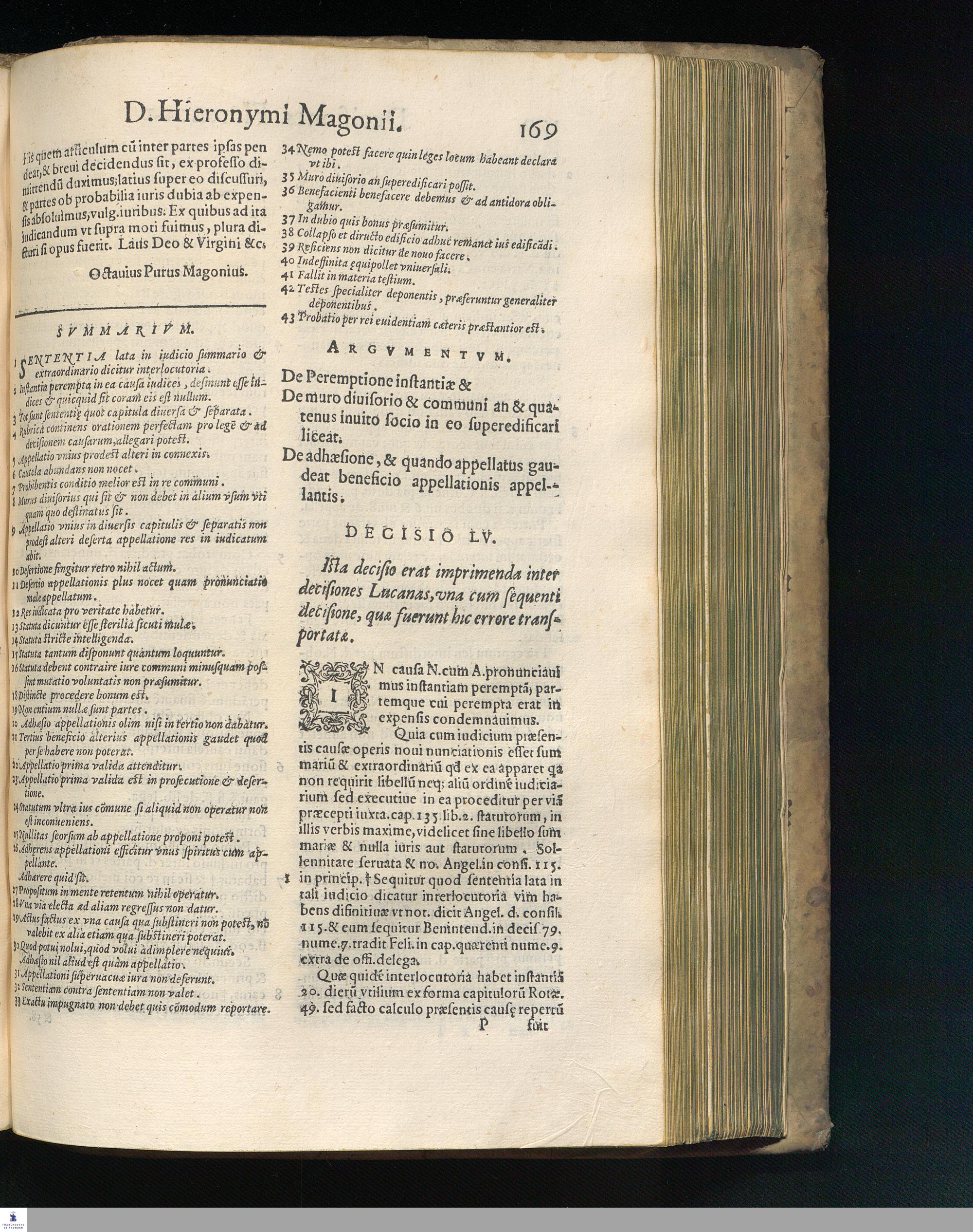 DECISIONES || CAVSARVM || ROTAE FLORENTINAE, || AVTHORE HIERONYMO MAGONIO. || I. V. D. VRBEVETANO. || NVNC PRIMVM IN LVCEM EDITAE. || Cum Indice Locupletissimo. ||
