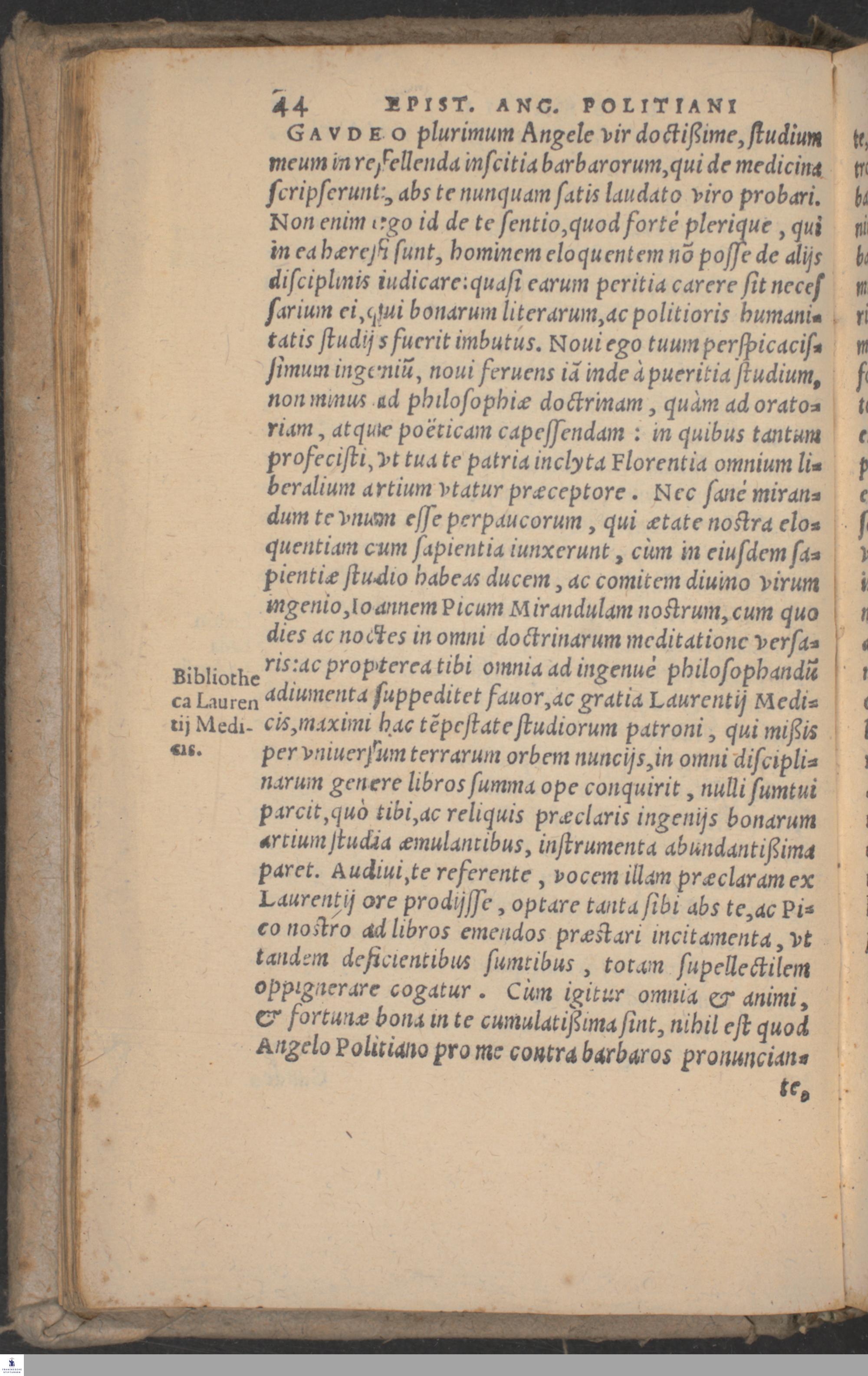 T. 1 (1565) ANGELI || POLITIANI || OPERVM || TOMVS PRIMVS. || Epistolarum libros XII. ac Miscellaneorum || Centuriam I. complectens. || Indicem rerum memorabilium calci || operis adiecimus. ||