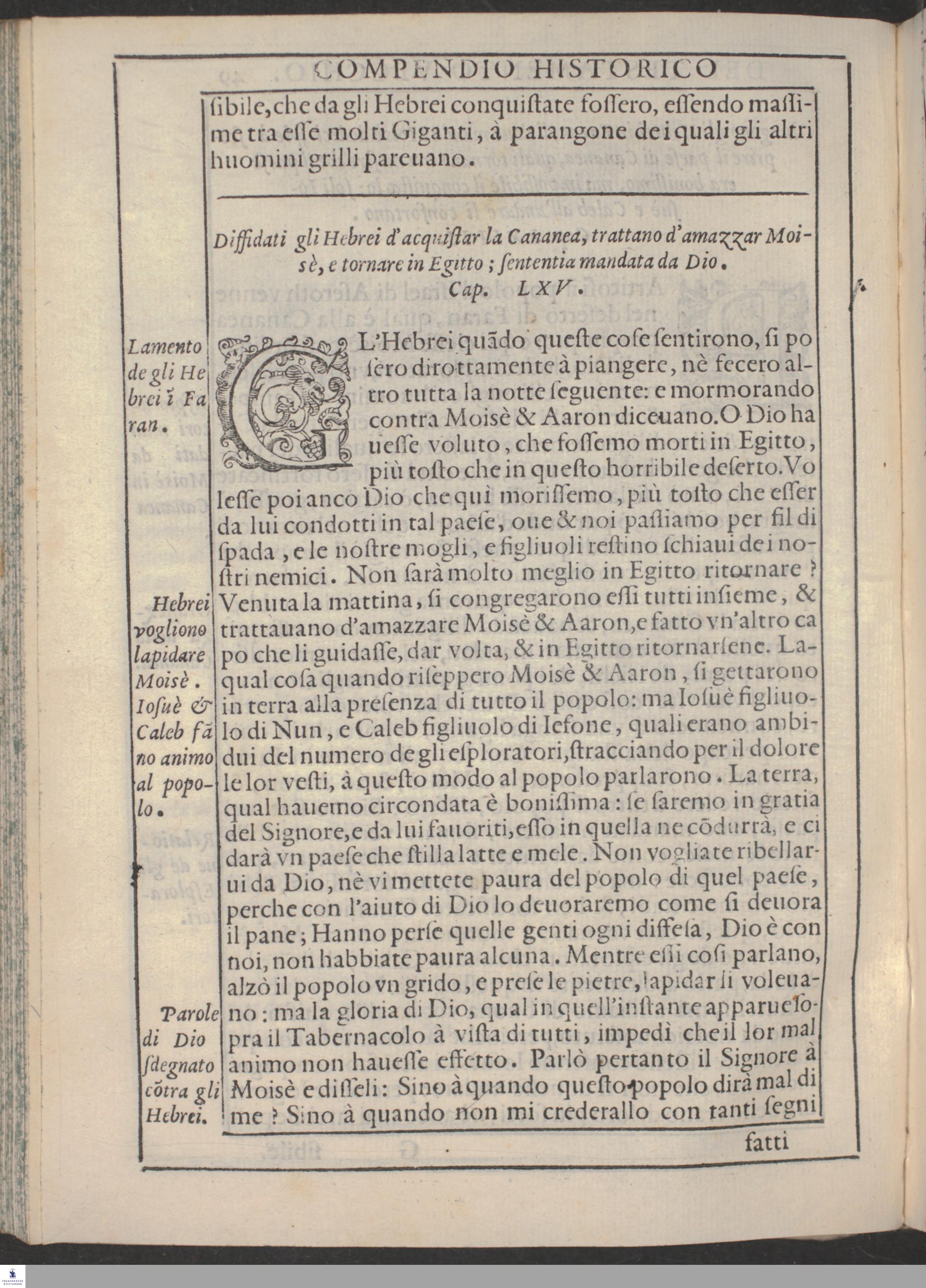 COMPENDIO || HISTORICO || Del Vecchio, e del Nuovo Testamento: || CAVATO DALLA || SACRA BIBBIA, || Da Don Bartolomeo Dionigi da Fano. || Nelquale si descriueno tutte le cose notabili, che successero nel || popolo Hebreo, dalla Creatione del Mondo, sino alla || vltima destruttione di Ierusalem. || Con la vita di Giesv Christo, Saluator del Mondo, & con la disse-||minatione dell'Euangelio, e della sua santa Fede. || Et con due Tauole, l'vna delli Capitoli, l'altra delle cose notabili. || CON PRIVILEGIO. ||