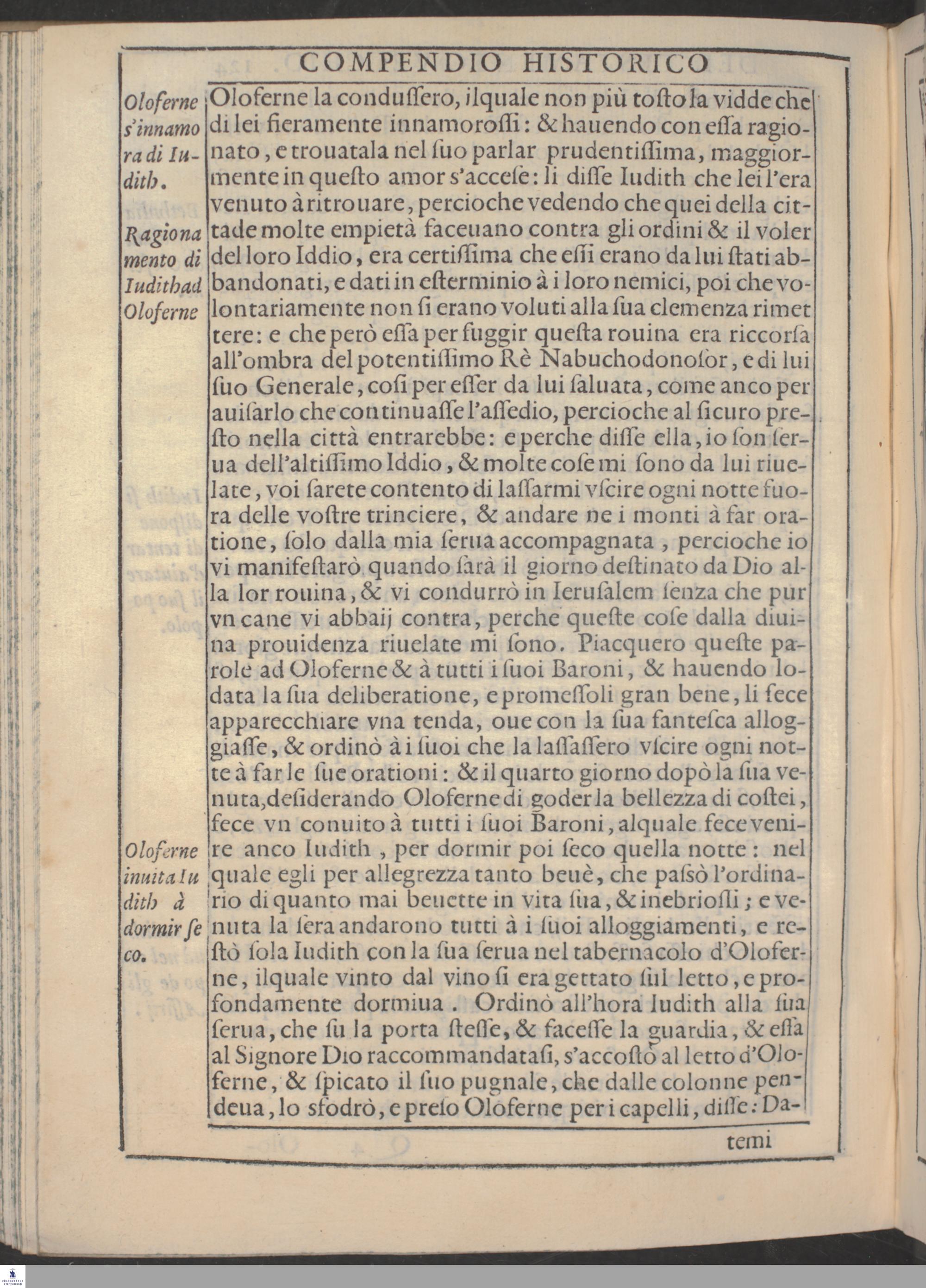 COMPENDIO || HISTORICO || Del Vecchio, e del Nuovo Testamento: || CAVATO DALLA || SACRA BIBBIA, || Da Don Bartolomeo Dionigi da Fano. || Nelquale si descriueno tutte le cose notabili, che successero nel || popolo Hebreo, dalla Creatione del Mondo, sino alla || vltima destruttione di Ierusalem. || Con la vita di Giesv Christo, Saluator del Mondo, & con la disse-||minatione dell'Euangelio, e della sua santa Fede. || Et con due Tauole, l'vna delli Capitoli, l'altra delle cose notabili. || CON PRIVILEGIO. ||