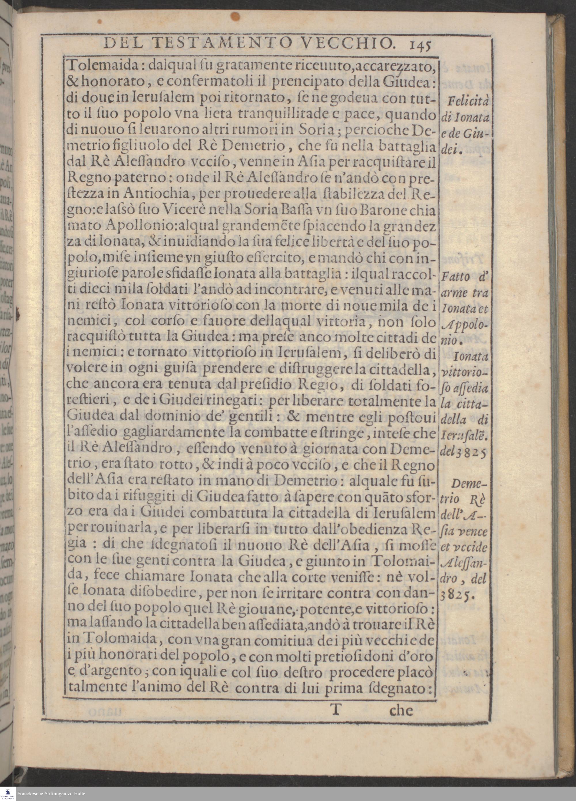 COMPENDIO || HISTORICO || Del Vecchio, e del Nuovo Testamento: || CAVATO DALLA || SACRA BIBBIA, || Da Don Bartolomeo Dionigi da Fano. || Nelquale si descriueno tutte le cose notabili, che successero nel || popolo Hebreo, dalla Creatione del Mondo, sino alla || vltima destruttione di Ierusalem. || Con la vita di Giesv Christo, Saluator del Mondo, & con la disse-||minatione dell'Euangelio, e della sua santa Fede. || Et con due Tauole, l'vna delli Capitoli, l'altra delle cose notabili. || CON PRIVILEGIO. ||