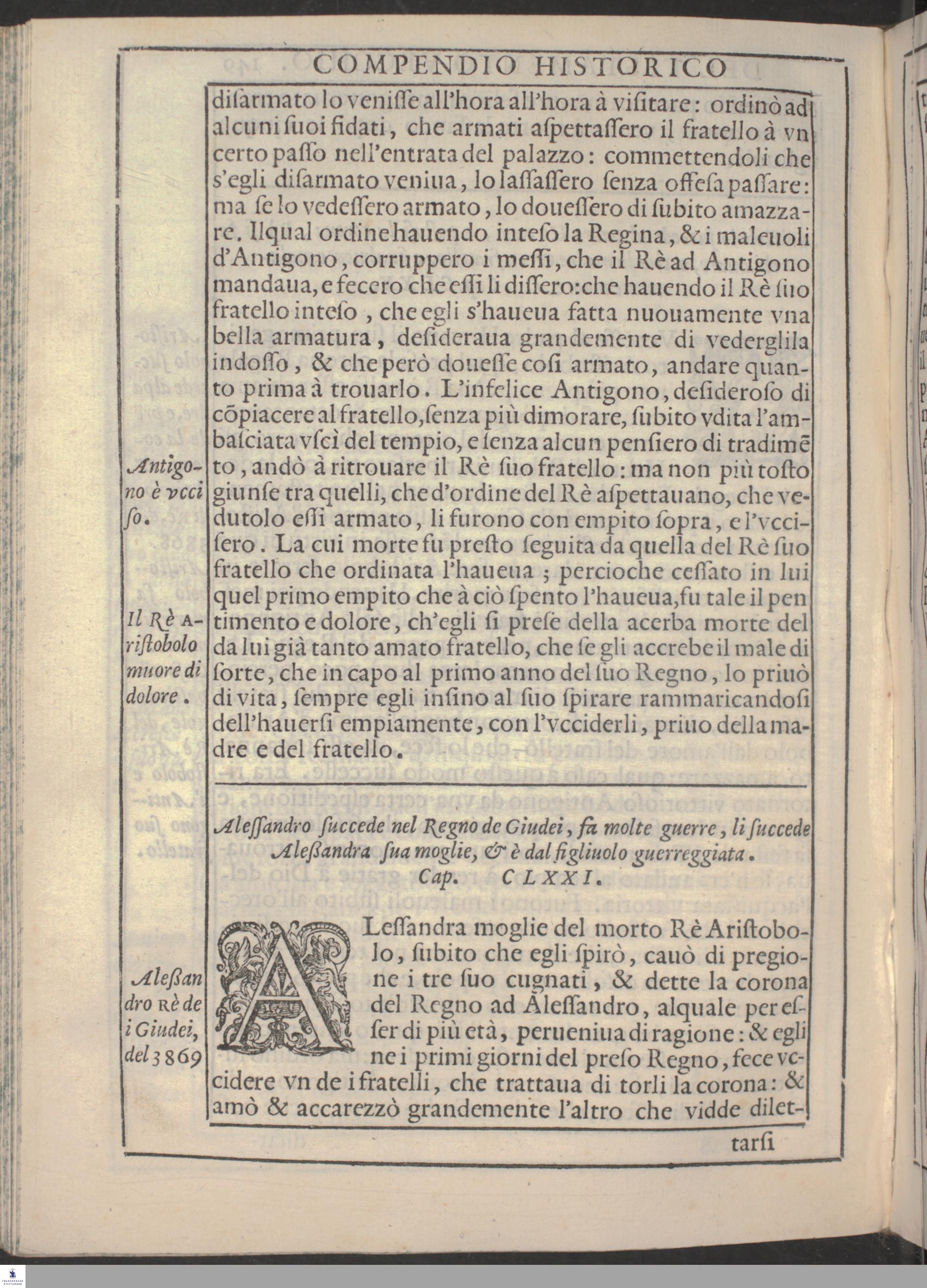 COMPENDIO || HISTORICO || Del Vecchio, e del Nuovo Testamento: || CAVATO DALLA || SACRA BIBBIA, || Da Don Bartolomeo Dionigi da Fano. || Nelquale si descriueno tutte le cose notabili, che successero nel || popolo Hebreo, dalla Creatione del Mondo, sino alla || vltima destruttione di Ierusalem. || Con la vita di Giesv Christo, Saluator del Mondo, & con la disse-||minatione dell'Euangelio, e della sua santa Fede. || Et con due Tauole, l'vna delli Capitoli, l'altra delle cose notabili. || CON PRIVILEGIO. ||
