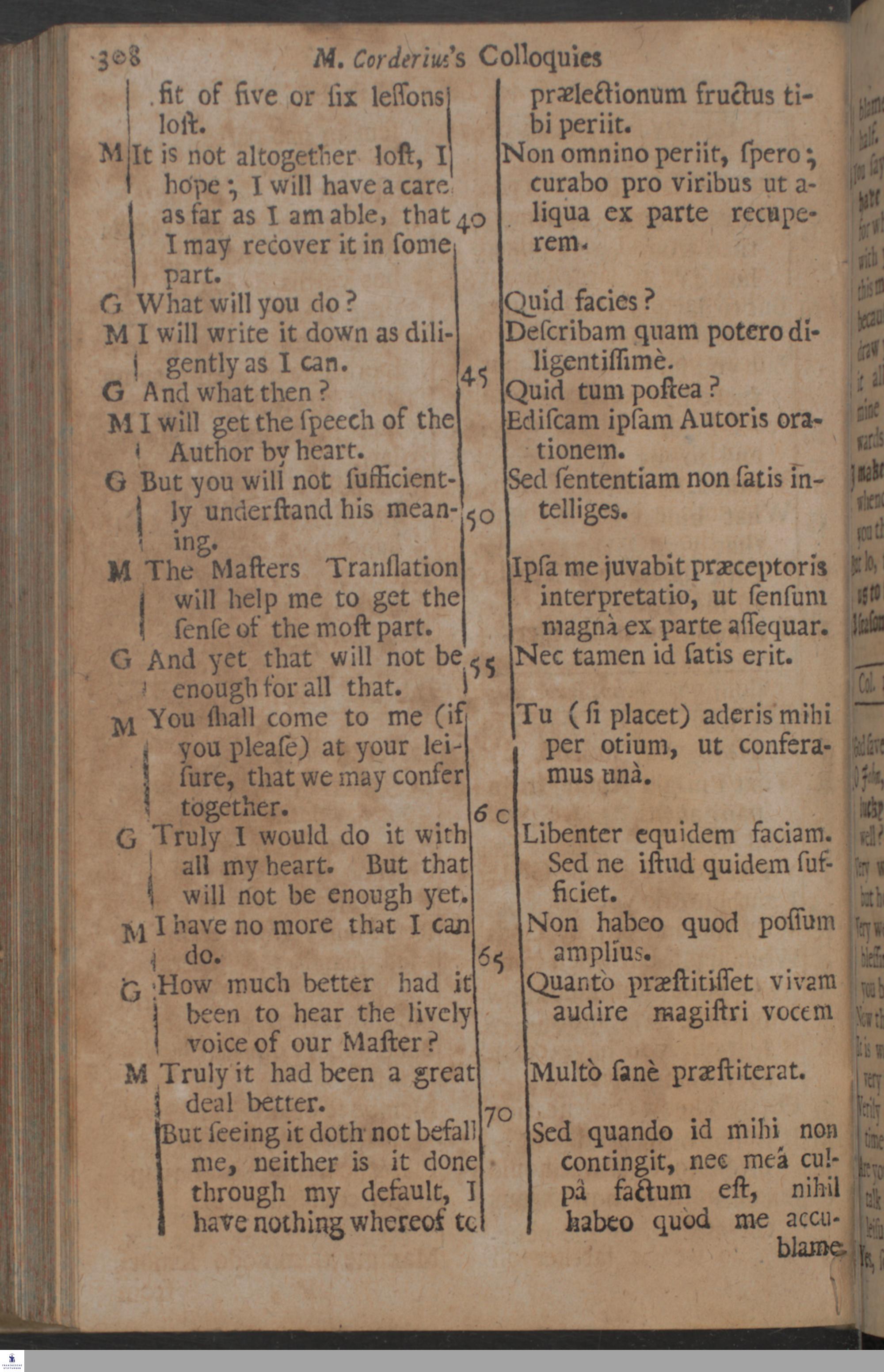 Maturini Corderii Colloquia Scholastica Anglo-Latina : In varias Clausulas distributa ; Observato utriusque Linguæ Idiomate ; Quosc. (ope vernaculi) in quotidiano sermone Latino pueri felicius exerceantur ; Positi sunt insuper in utriusque confiniis Numeri, quibus uniuscujusque Vocabuli vel Phrasiōs indicatur locus, & usus genuinus / A Carolo Hoole A. M. è Col. Linc. Oxon. Et nuper apud Londinates Ludimagistro ...