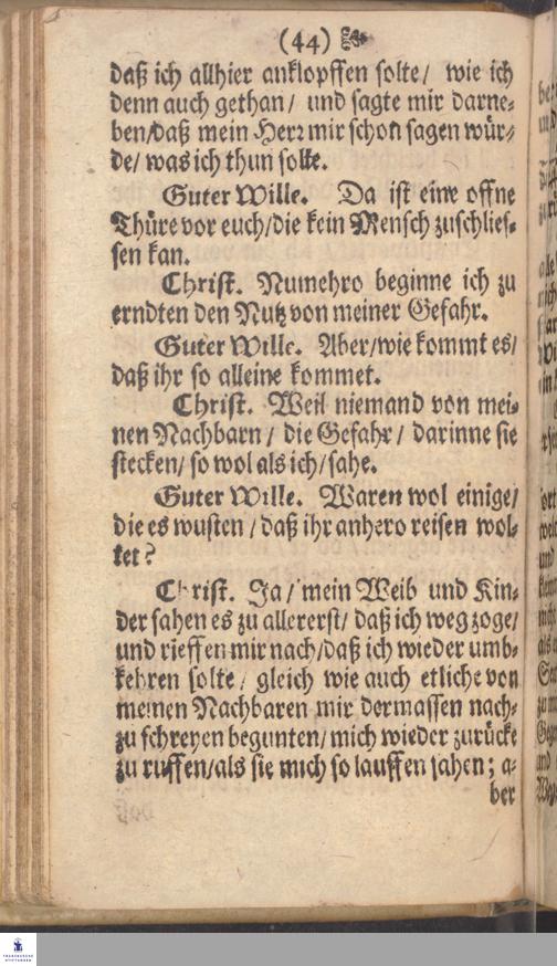 Eines Christen Reise Nach der Seeligen Ewigkeit/ Welche in unterschiedlichen artigen Sinnen-Bildern Den gantzen Zustand einer Bußfertigen und Gottsuchenden Seelen vorstellet / In Englischer Sprache beschrieben Durch Mr. Johannem Bunian, ... Hernach in Niederlandische/ und nun ... in die Hochteutsche Sprache übersetzet durch J. L. M. C.