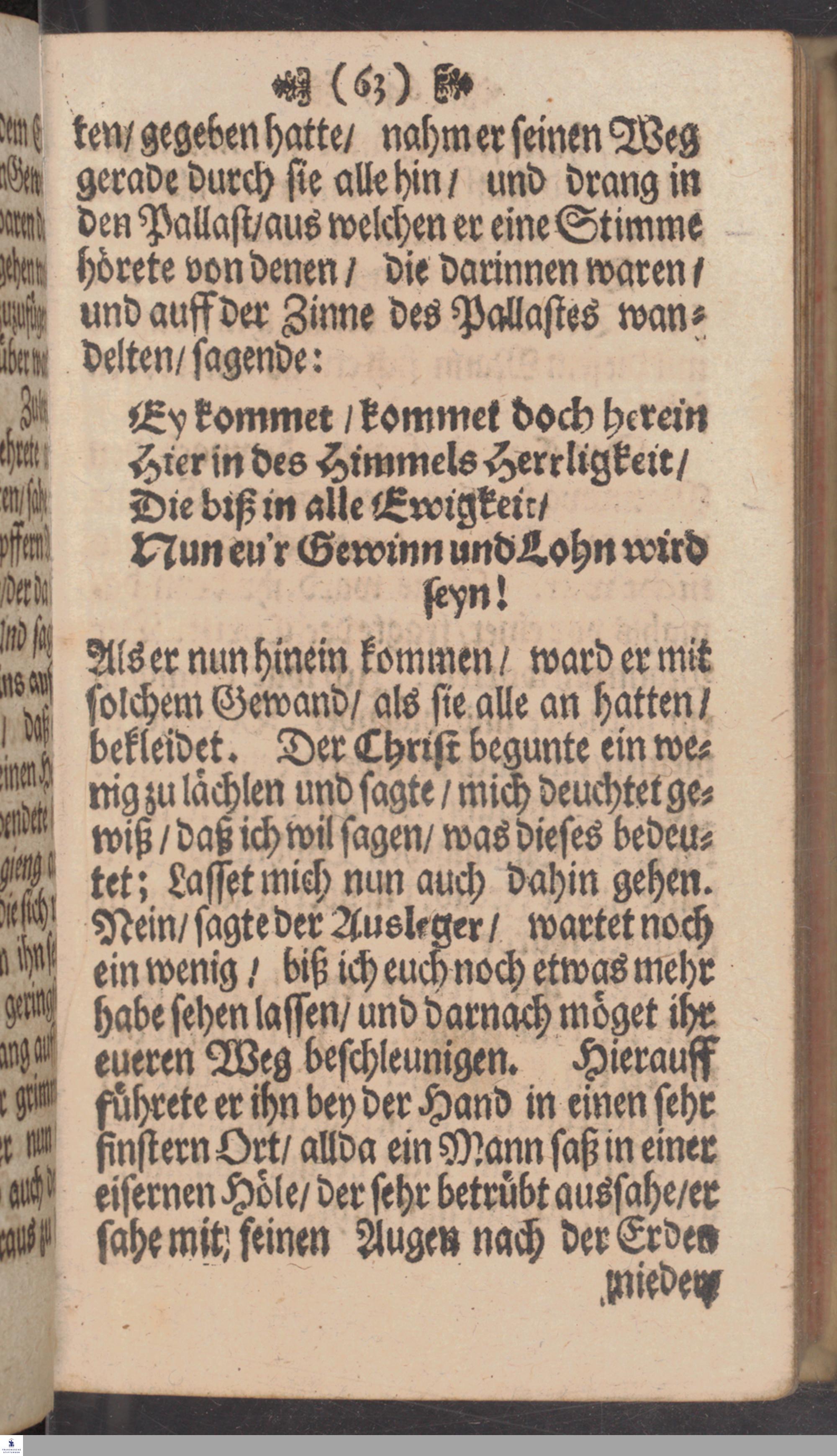 Eines Christen Reise Nach der Seeligen Ewigkeit/ Welche in unterschiedlichen artigen Sinnen-Bildern Den gantzen Zustand einer Bußfertigen und Gottsuchenden Seelen vorstellet / In Englischer Sprache beschrieben Durch Mr. Johannem Bunian, ... Hernach in Niederlandische/ und nun ... in die Hochteutsche Sprache übersetzet durch J. L. M. C.