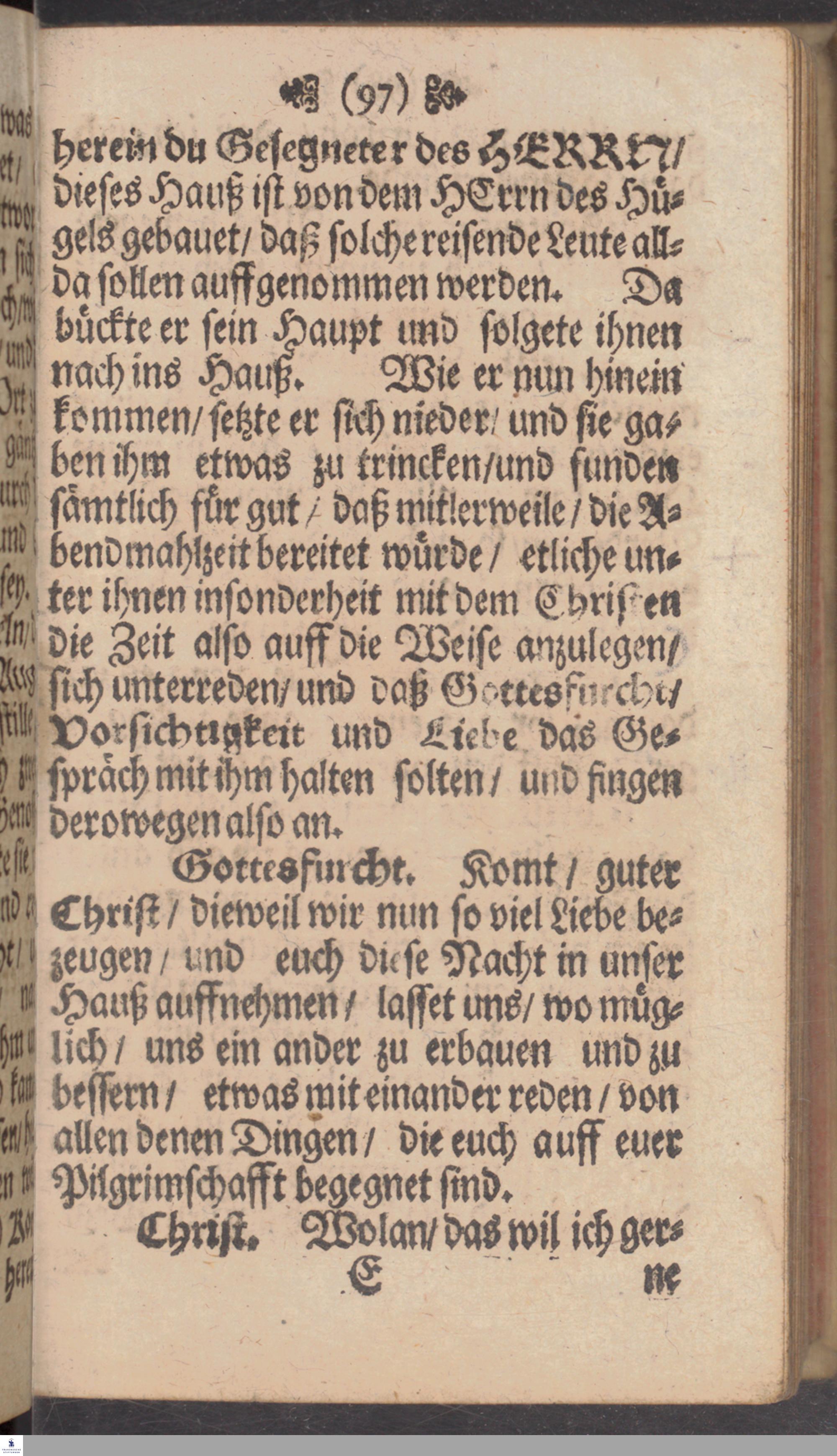 Eines Christen Reise Nach der Seeligen Ewigkeit/ Welche in unterschiedlichen artigen Sinnen-Bildern Den gantzen Zustand einer Bußfertigen und Gottsuchenden Seelen vorstellet / In Englischer Sprache beschrieben Durch Mr. Johannem Bunian, ... Hernach in Niederlandische/ und nun ... in die Hochteutsche Sprache übersetzet durch J. L. M. C.