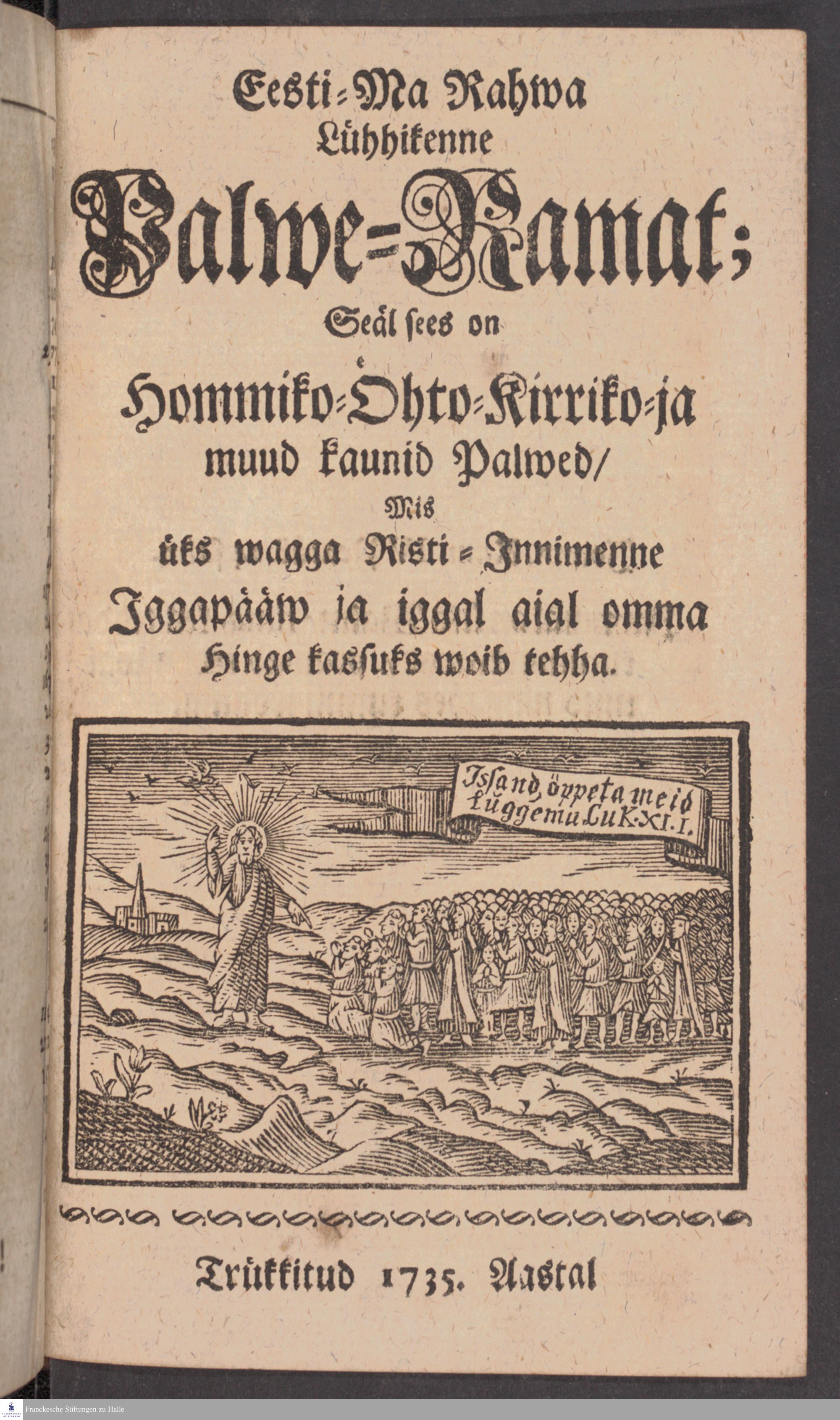 Eesti-Ma Rahwa Koddo-ning Kirko-Ramat : Mis sees on I. Önsa Öppetaja Lutterusse Katekismus Lühhikesse Selletussega; II. Keik Ewangeliummid ja Epistlid, ning ka 1. Meie Issanda Jesusse Kristusse Kannataminne, Surm, Üllestousminne ning Taewaminneminne; 2. Jerusalemma Lin̄na Ärrarikminne; III. Üks Laulo-Ramat; ning IV. Üks Palwe-Ramat; Jummala Auuks, ning Eesti-ma Rahwa Öppetusseks walmistud.