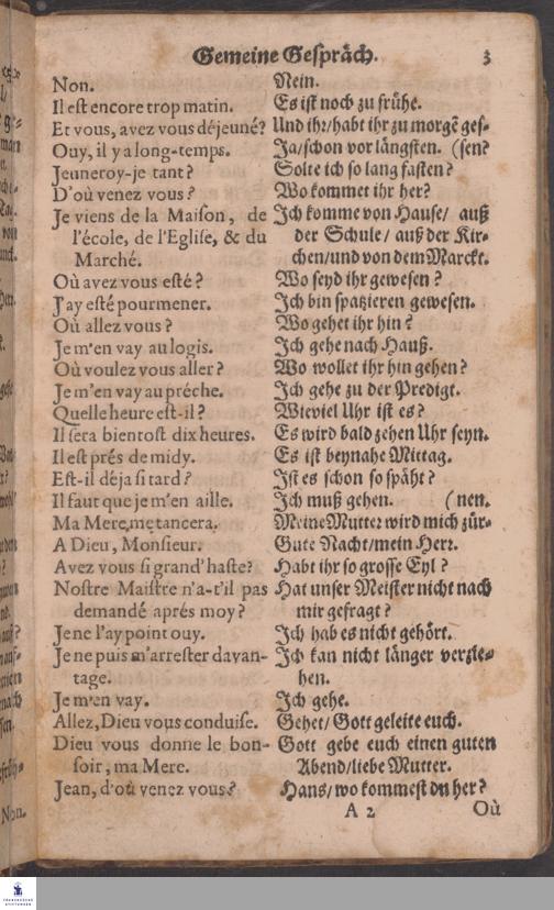 Neu-verbessertes, und in vielen Stücken vermehrtes Parlement: Oder/ Gemeine Gespräche, Französisch und Teutsch; Sam[m]t einem neuen Namen- und Wörter-Büchlein ...