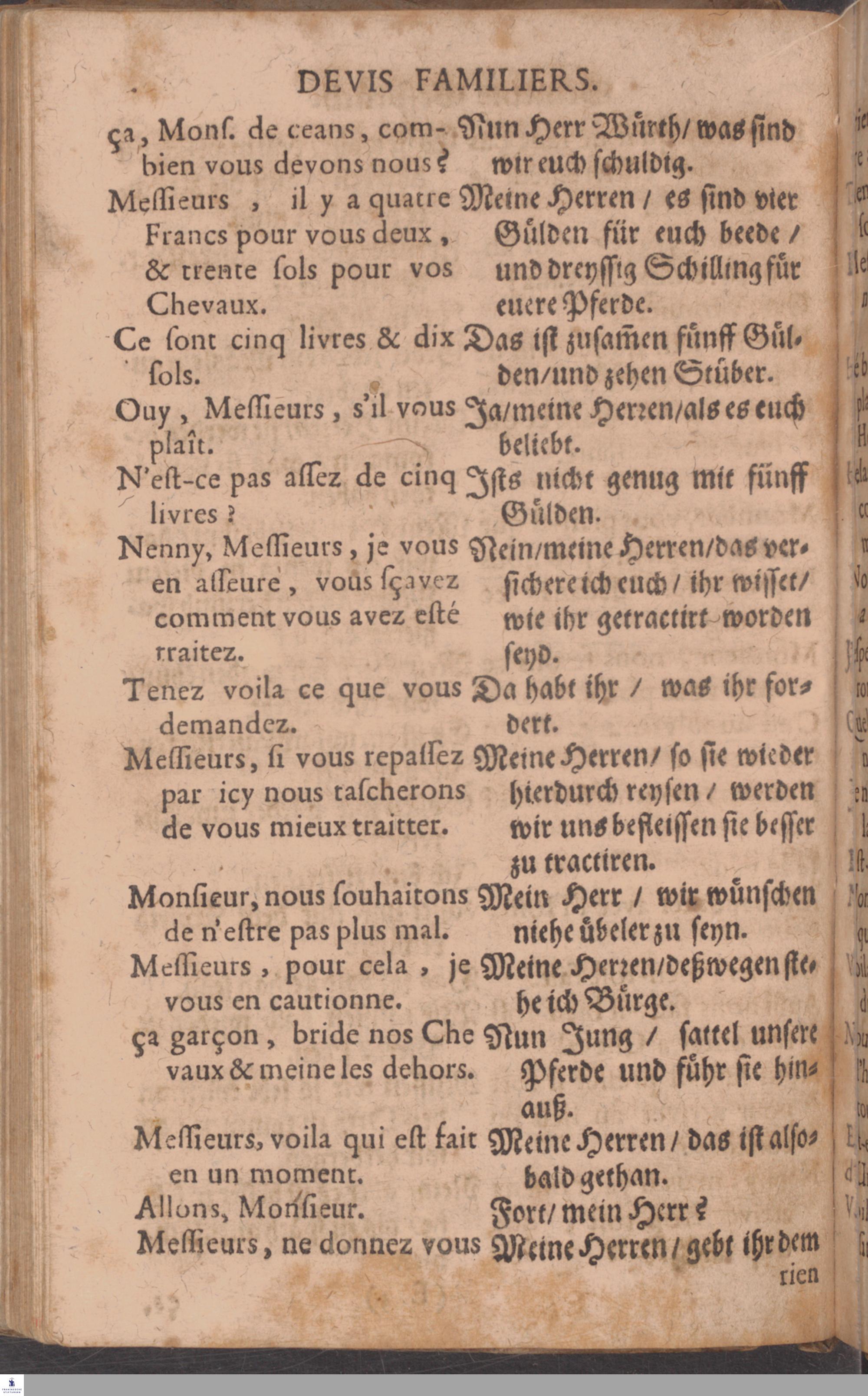 Neu-verbessertes, und in vielen Stücken vermehrtes Parlement: Oder/ Gemeine Gespräche, Französisch und Teutsch; Sam[m]t einem neuen Namen- und Wörter-Büchlein ...