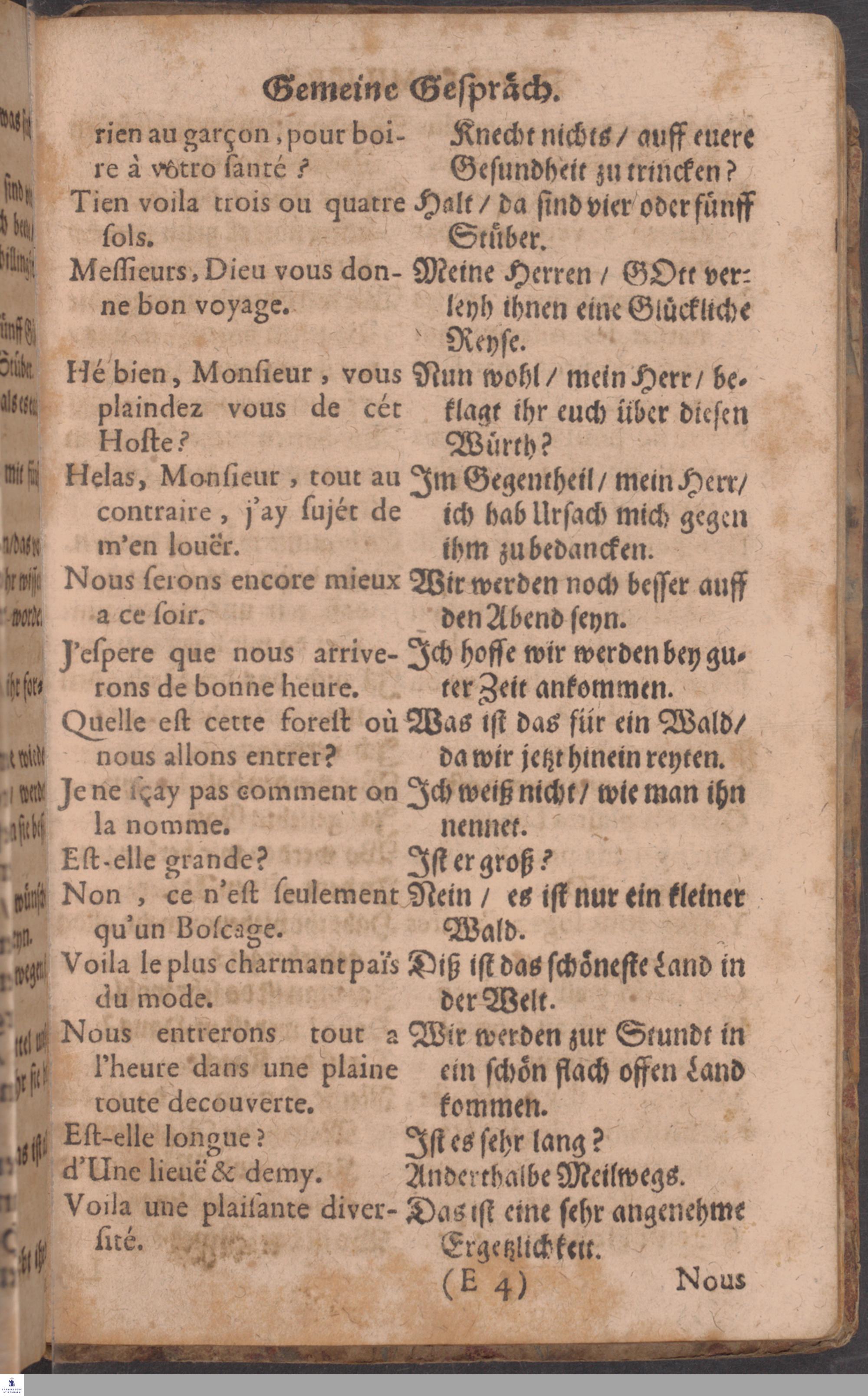 Neu-verbessertes, und in vielen Stücken vermehrtes Parlement: Oder/ Gemeine Gespräche, Französisch und Teutsch; Sam[m]t einem neuen Namen- und Wörter-Büchlein ...