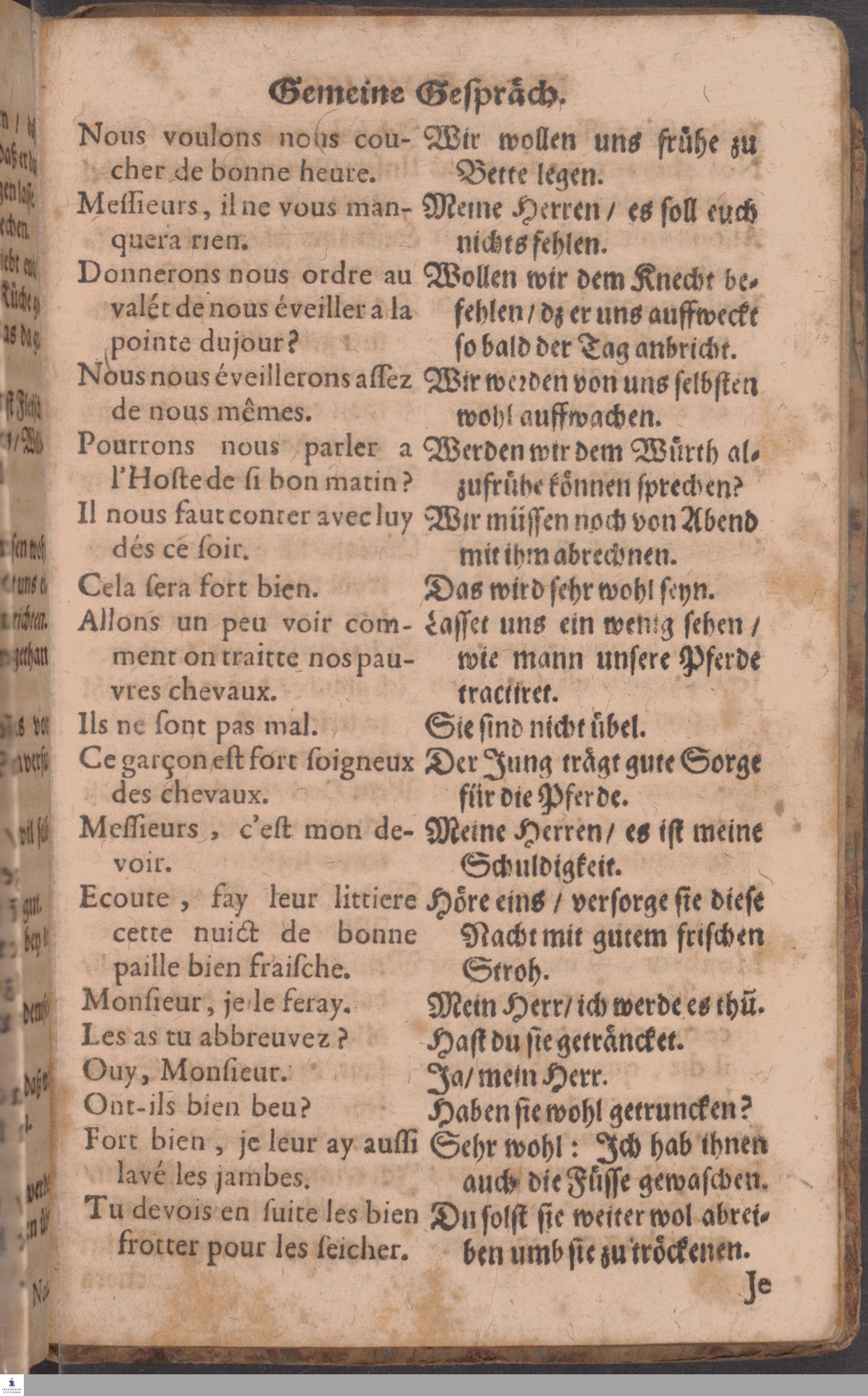 Neu-verbessertes, und in vielen Stücken vermehrtes Parlement: Oder/ Gemeine Gespräche, Französisch und Teutsch; Sam[m]t einem neuen Namen- und Wörter-Büchlein ...