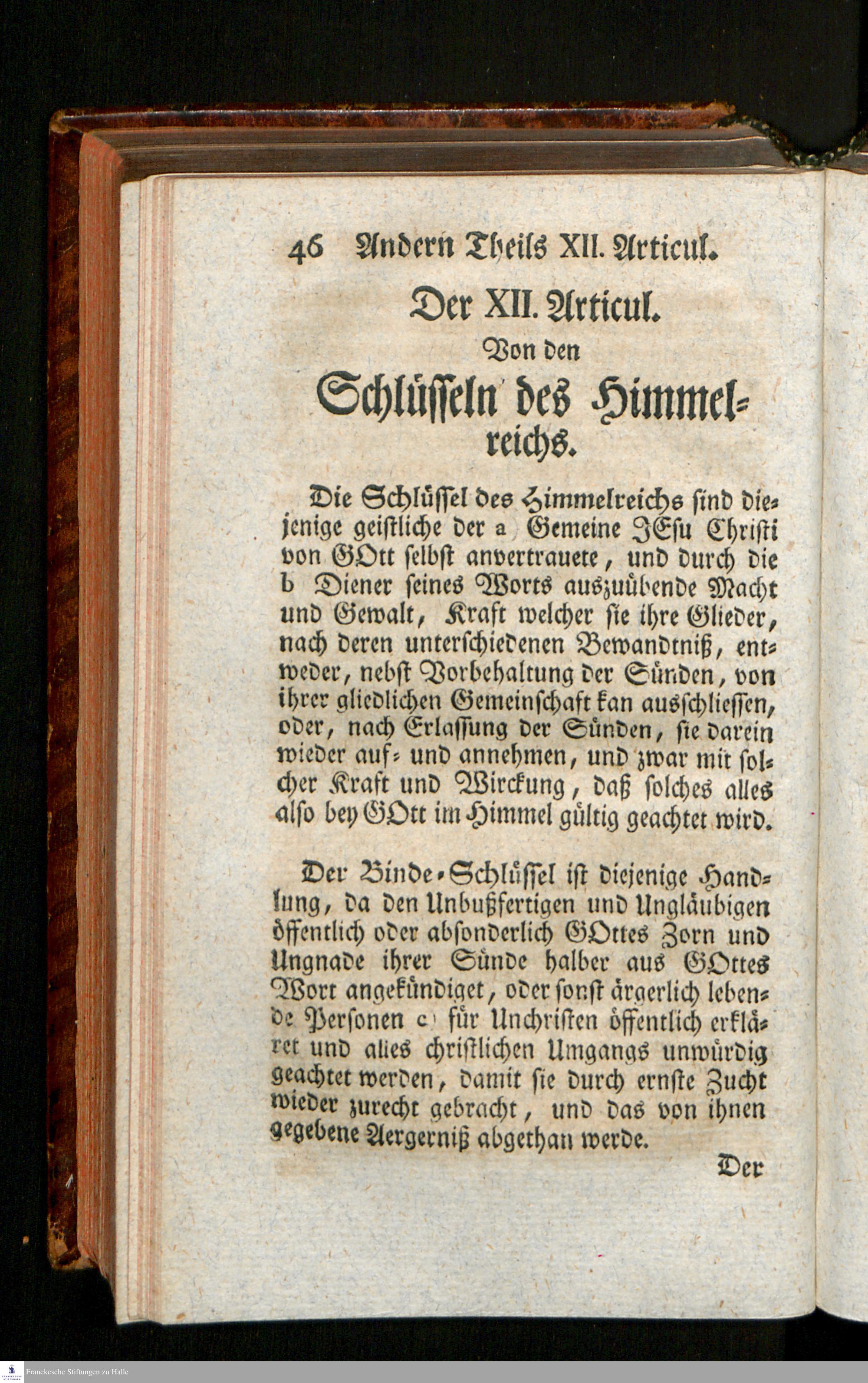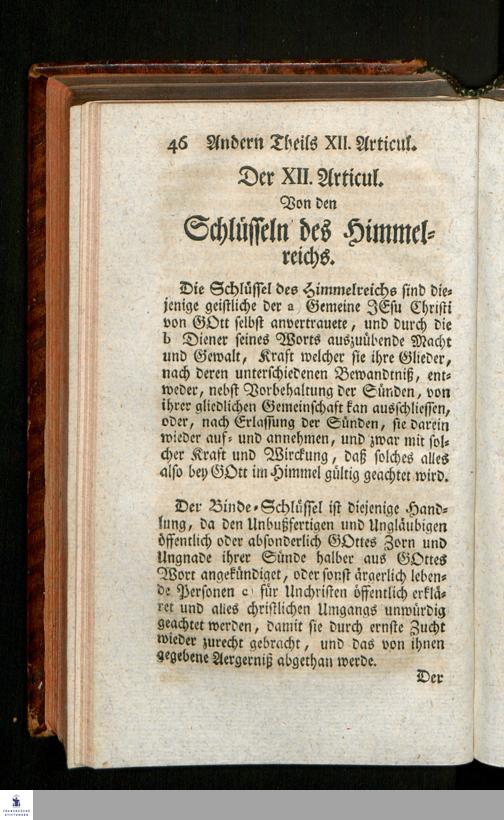 Definitiones Theologicae, Oder Theologische Beschreibungen der Christl. Glaubens-Articul : aus Hrn. Ioh. Anastasii Freylinghausens, Pastoris zu St. Ulrich in Halle, Grundlegung der Theologie und deren Compendio : Mit Anführung der vornehmsten zum Beweisthum gehörigen Sprüche der heiligen Schrift / Verfertiget und zusammen gezogen von einem Liebhaber der göttlichen Wahrheit