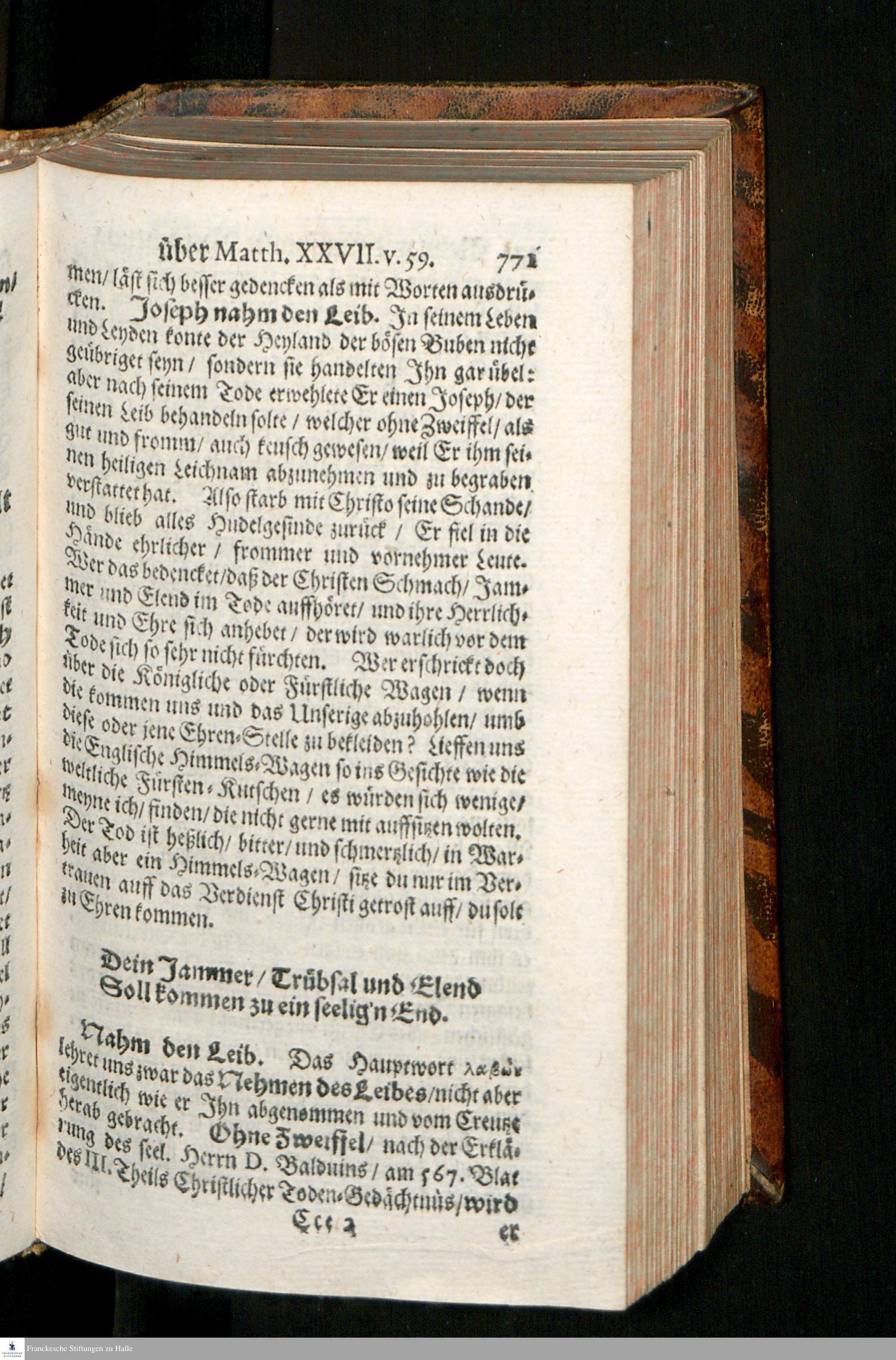 Die noch übrige Erwegung Des ungerechten Gerichts/ Falschen Spruchs/ und darauff erfolgten Creutz-Todes und Begräbnüsses Des Herrn Jesu : Auß dem Von Anfang biß zu dem Ende erklährten/ XXVII. Cap. Matthäi. Womit also Die gantze Traurige Leidens-Geschichte des Heylands/ zu Erbauung des Christenthums vollends betrachtet und geschloßen wird / von Thoma Crenio [i.e. Thomas Theodor Crusius]