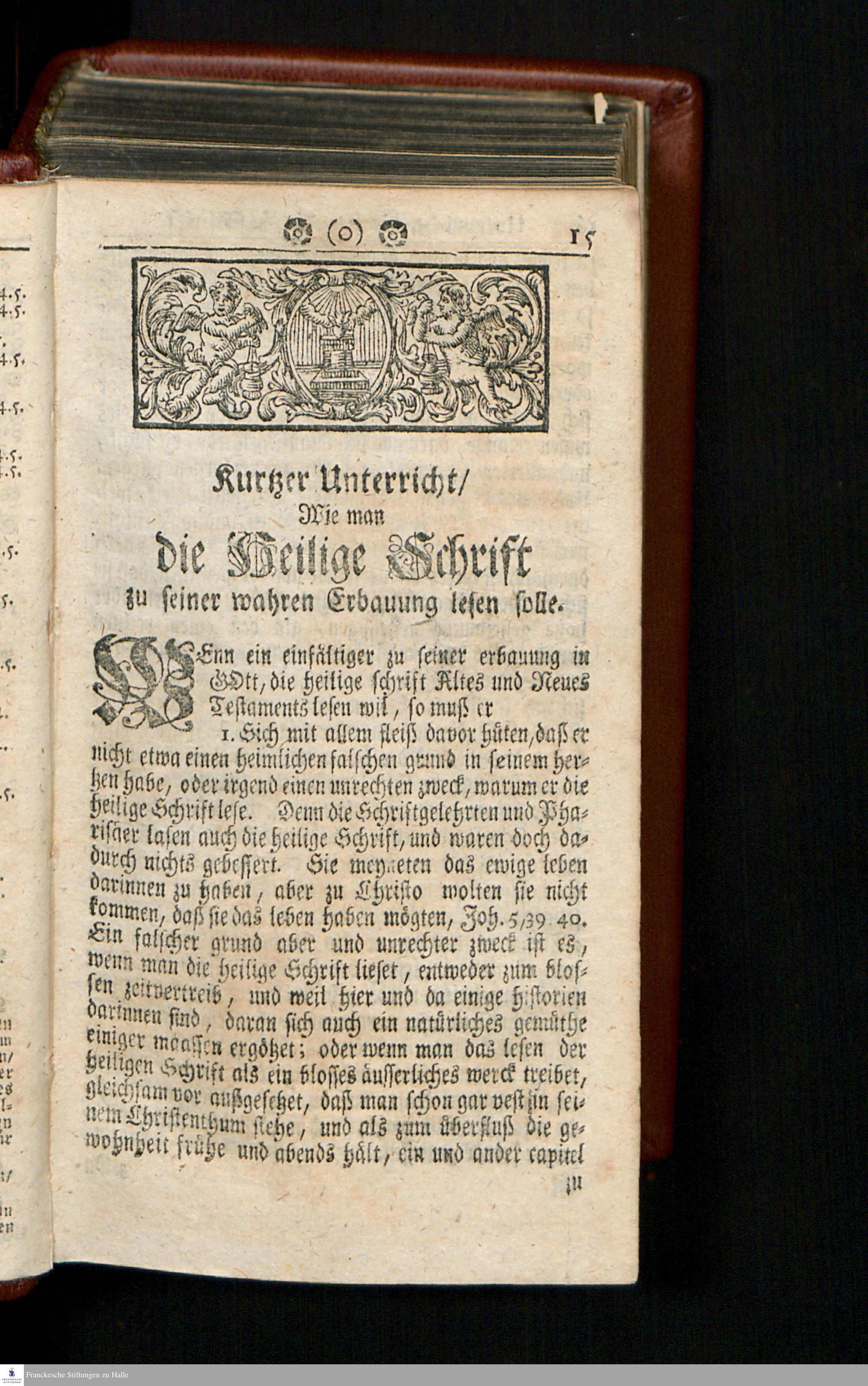 Biblia, Das ist: Die gantze Heil. Schrift Altes und Neues Testaments / Nach der Teutschen Ubersetzung D. Martin Luthers; Mit iedes Capitels kurtzen Summarien/ und nöthigsten Parallelen; Mit Fleiß übersehen, Und gegen einige/ sonderlich erstere/ Editiones des sel. Mannes gehalten, auch an unterschiedlichen Orten nach denselben eingerichtet, und von vielen in den bisherigen Exemplarien hin und wieder eingeschlichenen druckfehlern gesaubert. Nebst einer Vorrede Hn. Baron Carl Hildebrands v. Canstein.