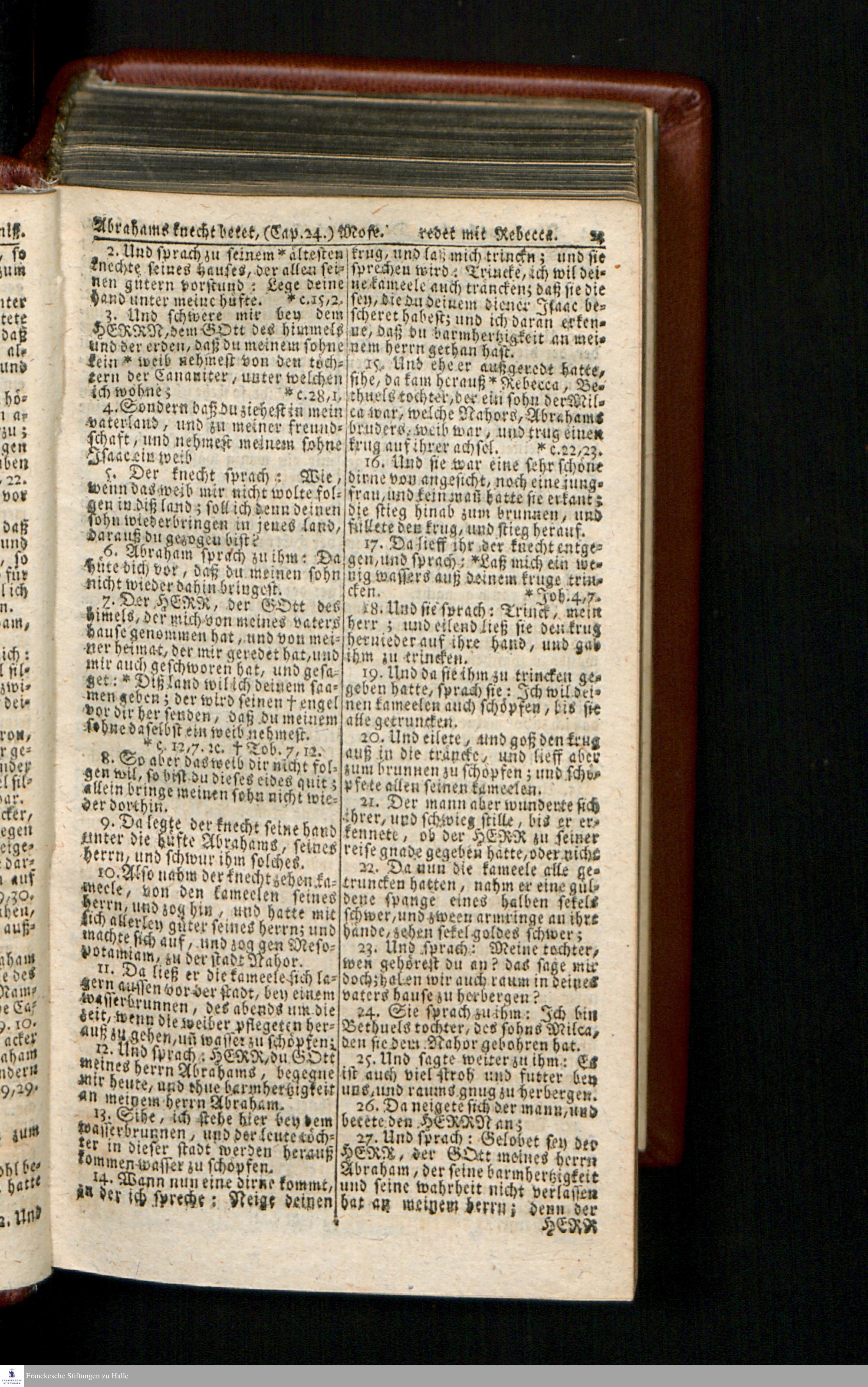 Biblia, Das ist: Die gantze Heil. Schrift Altes und Neues Testaments / Nach der Teutschen Ubersetzung D. Martin Luthers; Mit iedes Capitels kurtzen Summarien/ und nöthigsten Parallelen; Mit Fleiß übersehen, Und gegen einige/ sonderlich erstere/ Editiones des sel. Mannes gehalten, auch an unterschiedlichen Orten nach denselben eingerichtet, und von vielen in den bisherigen Exemplarien hin und wieder eingeschlichenen druckfehlern gesaubert. Nebst einer Vorrede Hn. Baron Carl Hildebrands v. Canstein.