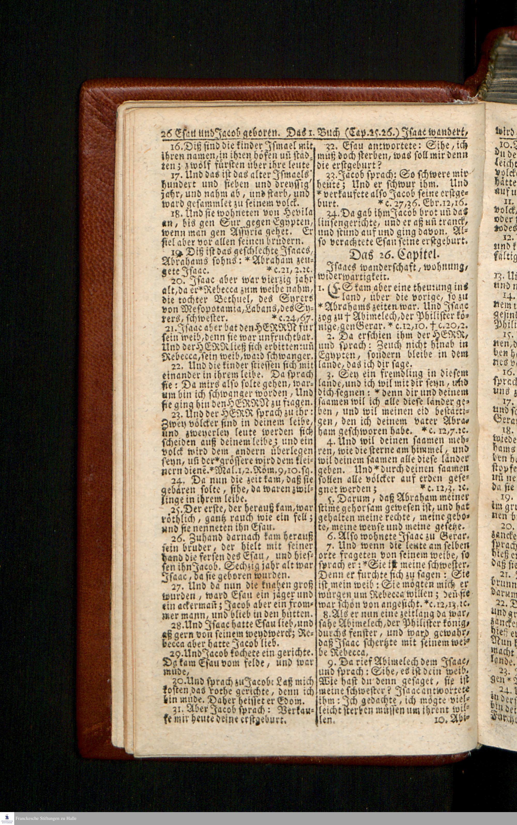 Biblia, Das ist: Die gantze Heil. Schrift Altes und Neues Testaments / Nach der Teutschen Ubersetzung D. Martin Luthers; Mit iedes Capitels kurtzen Summarien/ und nöthigsten Parallelen; Mit Fleiß übersehen, Und gegen einige/ sonderlich erstere/ Editiones des sel. Mannes gehalten, auch an unterschiedlichen Orten nach denselben eingerichtet, und von vielen in den bisherigen Exemplarien hin und wieder eingeschlichenen druckfehlern gesaubert. Nebst einer Vorrede Hn. Baron Carl Hildebrands v. Canstein.