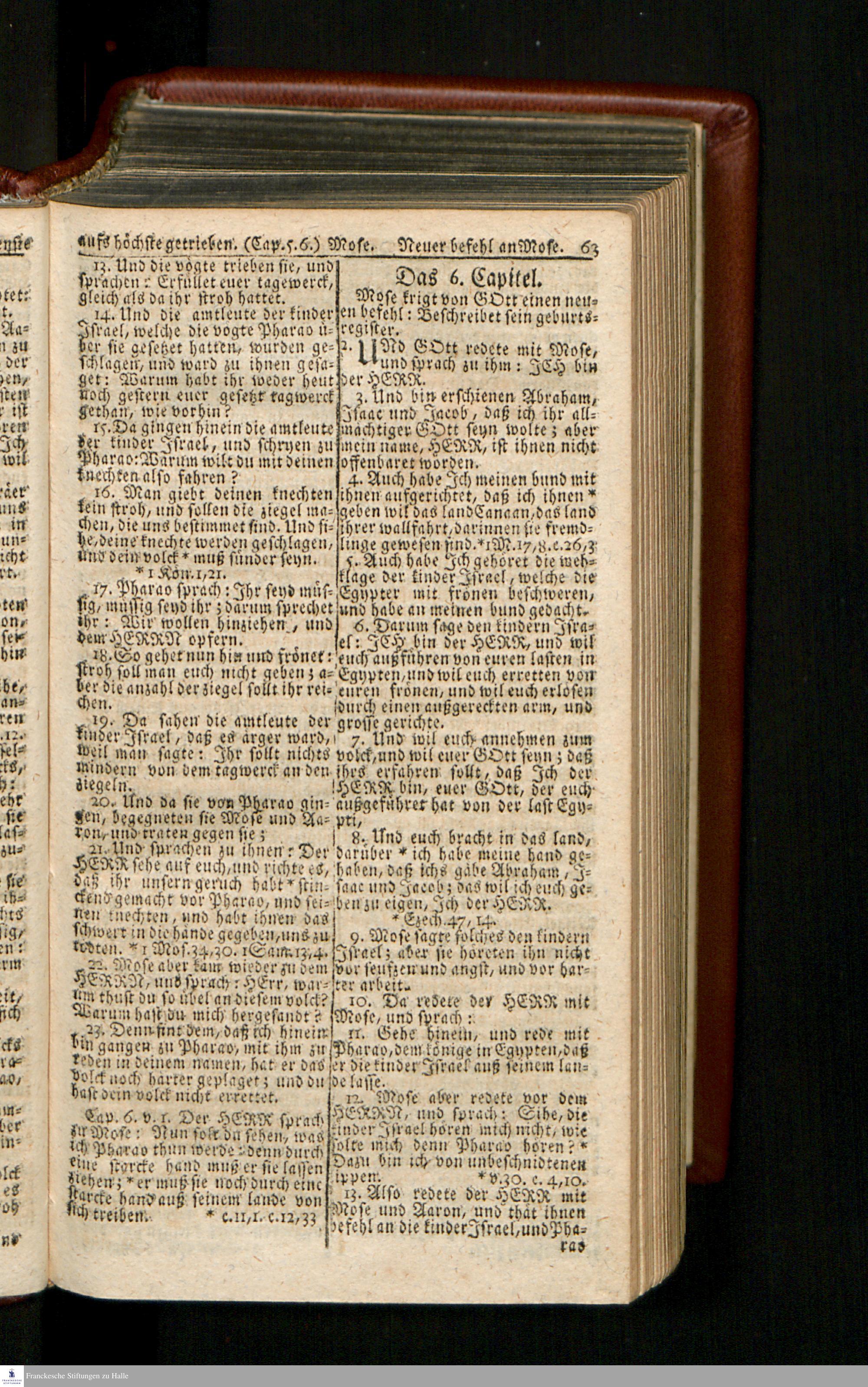 Biblia, Das ist: Die gantze Heil. Schrift Altes und Neues Testaments / Nach der Teutschen Ubersetzung D. Martin Luthers; Mit iedes Capitels kurtzen Summarien/ und nöthigsten Parallelen; Mit Fleiß übersehen, Und gegen einige/ sonderlich erstere/ Editiones des sel. Mannes gehalten, auch an unterschiedlichen Orten nach denselben eingerichtet, und von vielen in den bisherigen Exemplarien hin und wieder eingeschlichenen druckfehlern gesaubert. Nebst einer Vorrede Hn. Baron Carl Hildebrands v. Canstein.