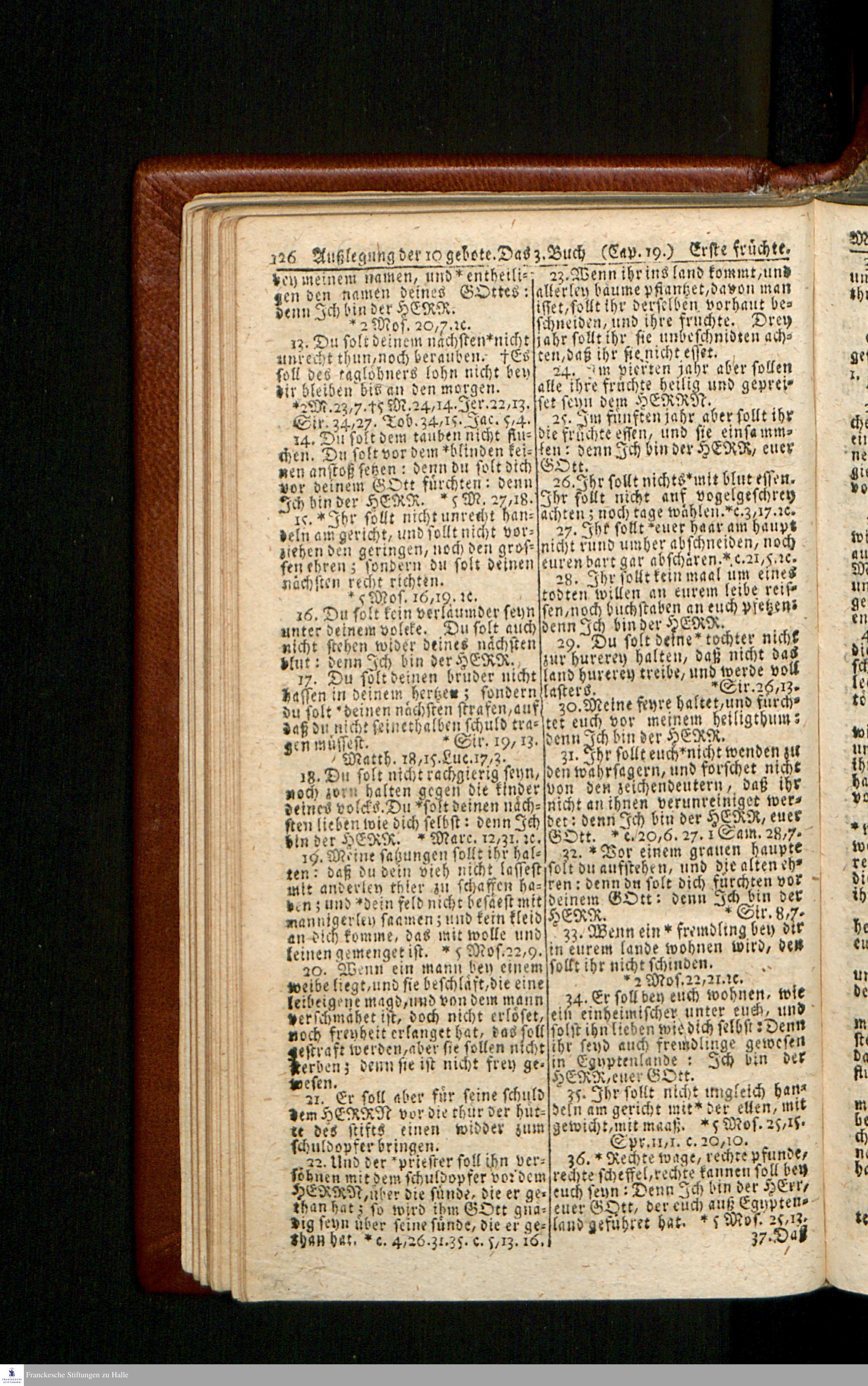 Biblia, Das ist: Die gantze Heil. Schrift Altes und Neues Testaments / Nach der Teutschen Ubersetzung D. Martin Luthers; Mit iedes Capitels kurtzen Summarien/ und nöthigsten Parallelen; Mit Fleiß übersehen, Und gegen einige/ sonderlich erstere/ Editiones des sel. Mannes gehalten, auch an unterschiedlichen Orten nach denselben eingerichtet, und von vielen in den bisherigen Exemplarien hin und wieder eingeschlichenen druckfehlern gesaubert. Nebst einer Vorrede Hn. Baron Carl Hildebrands v. Canstein.