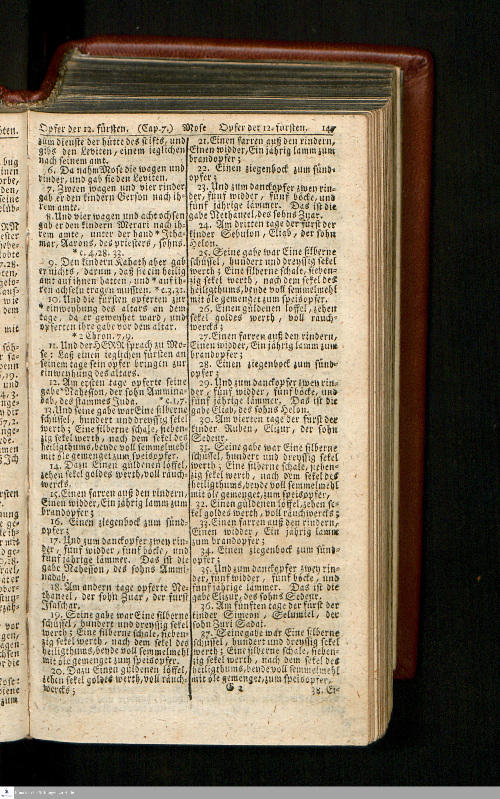 Biblia, Das ist: Die gantze Heil. Schrift Altes und Neues Testaments / Nach der Teutschen Ubersetzung D. Martin Luthers; Mit iedes Capitels kurtzen Summarien/ und nöthigsten Parallelen; Mit Fleiß übersehen, Und gegen einige/ sonderlich erstere/ Editiones des sel. Mannes gehalten, auch an unterschiedlichen Orten nach denselben eingerichtet, und von vielen in den bisherigen Exemplarien hin und wieder eingeschlichenen druckfehlern gesaubert. Nebst einer Vorrede Hn. Baron Carl Hildebrands v. Canstein.