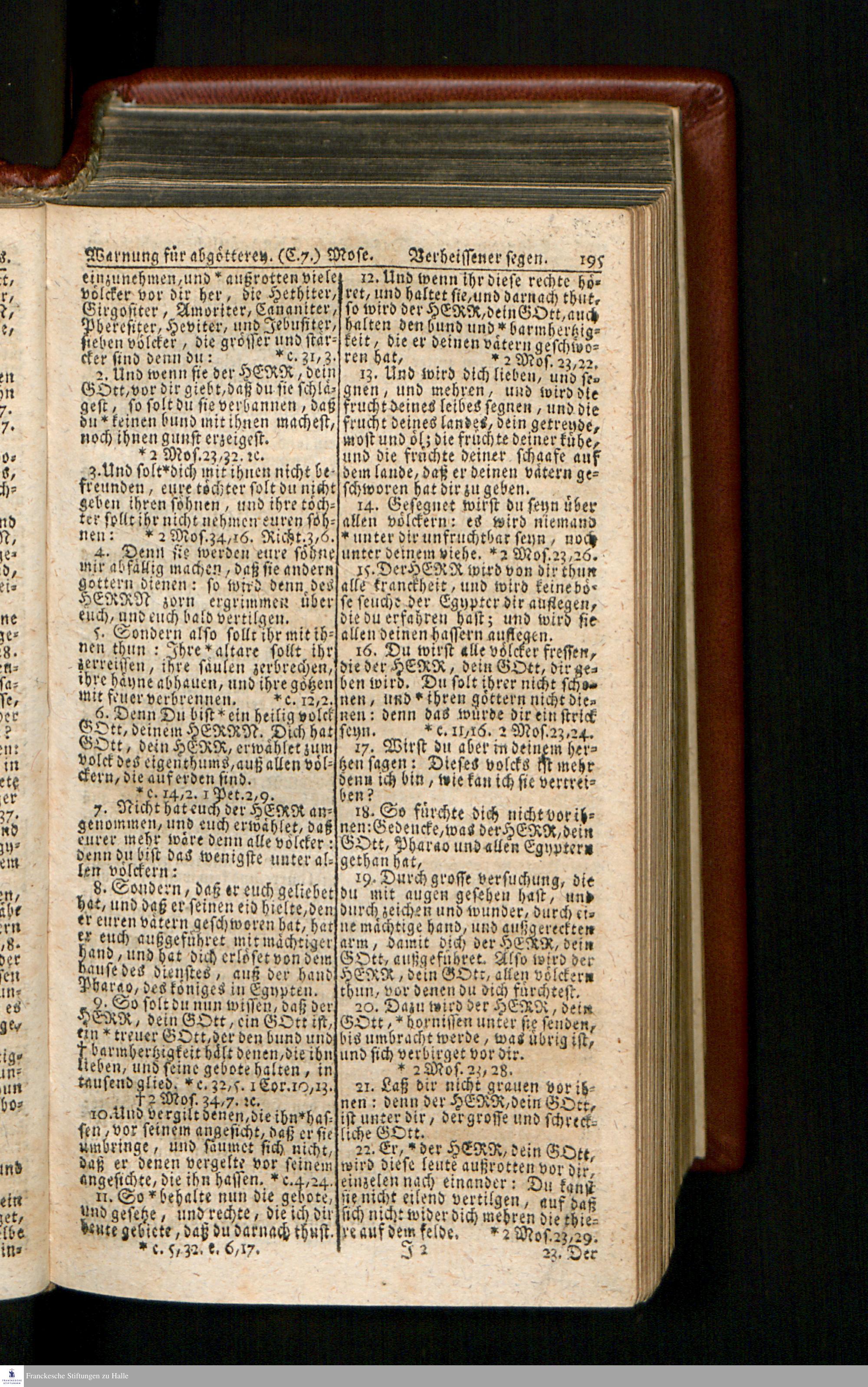 Biblia, Das ist: Die gantze Heil. Schrift Altes und Neues Testaments / Nach der Teutschen Ubersetzung D. Martin Luthers; Mit iedes Capitels kurtzen Summarien/ und nöthigsten Parallelen; Mit Fleiß übersehen, Und gegen einige/ sonderlich erstere/ Editiones des sel. Mannes gehalten, auch an unterschiedlichen Orten nach denselben eingerichtet, und von vielen in den bisherigen Exemplarien hin und wieder eingeschlichenen druckfehlern gesaubert. Nebst einer Vorrede Hn. Baron Carl Hildebrands v. Canstein.