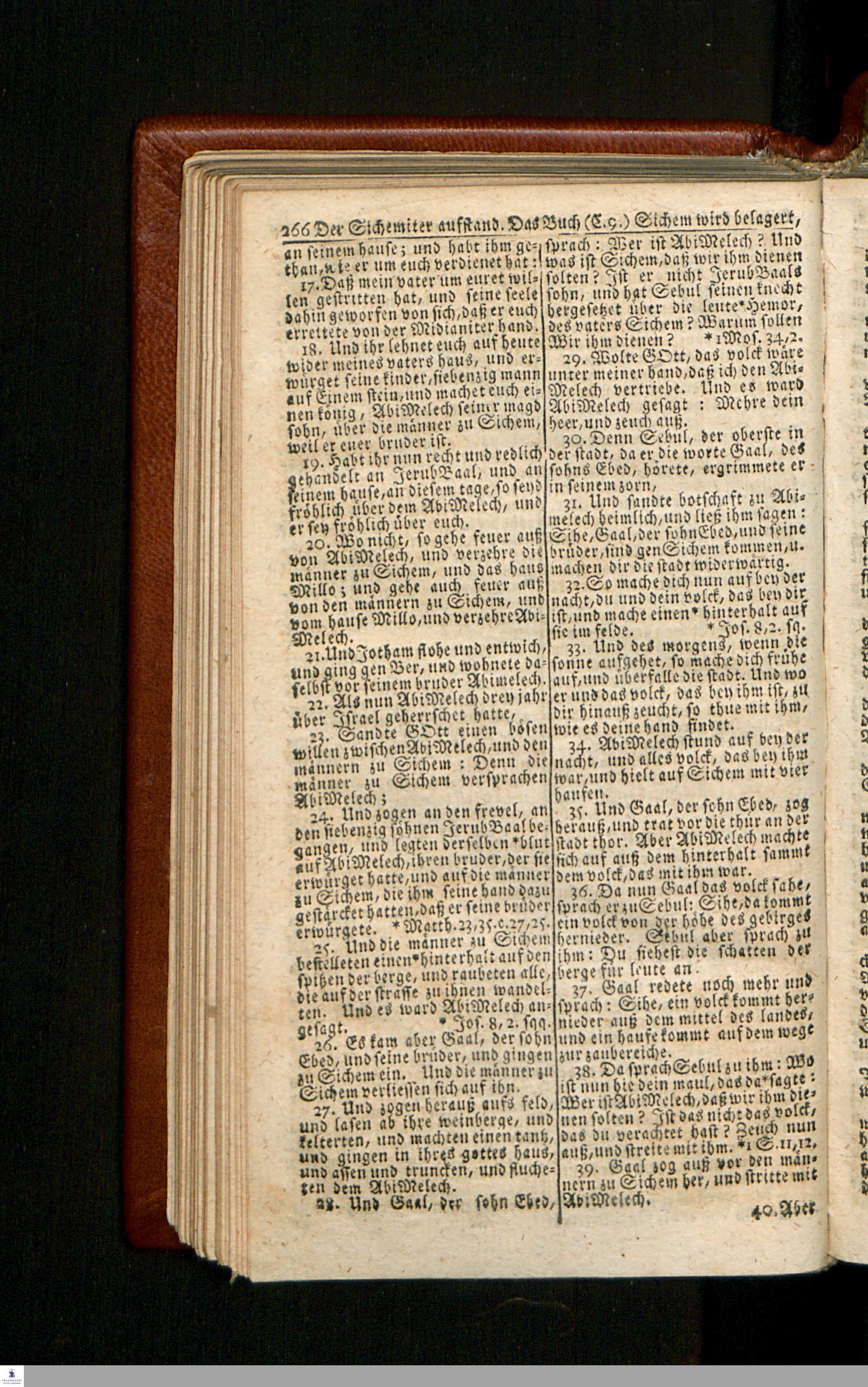 Biblia, Das ist: Die gantze Heil. Schrift Altes und Neues Testaments / Nach der Teutschen Ubersetzung D. Martin Luthers; Mit iedes Capitels kurtzen Summarien/ und nöthigsten Parallelen; Mit Fleiß übersehen, Und gegen einige/ sonderlich erstere/ Editiones des sel. Mannes gehalten, auch an unterschiedlichen Orten nach denselben eingerichtet, und von vielen in den bisherigen Exemplarien hin und wieder eingeschlichenen druckfehlern gesaubert. Nebst einer Vorrede Hn. Baron Carl Hildebrands v. Canstein.