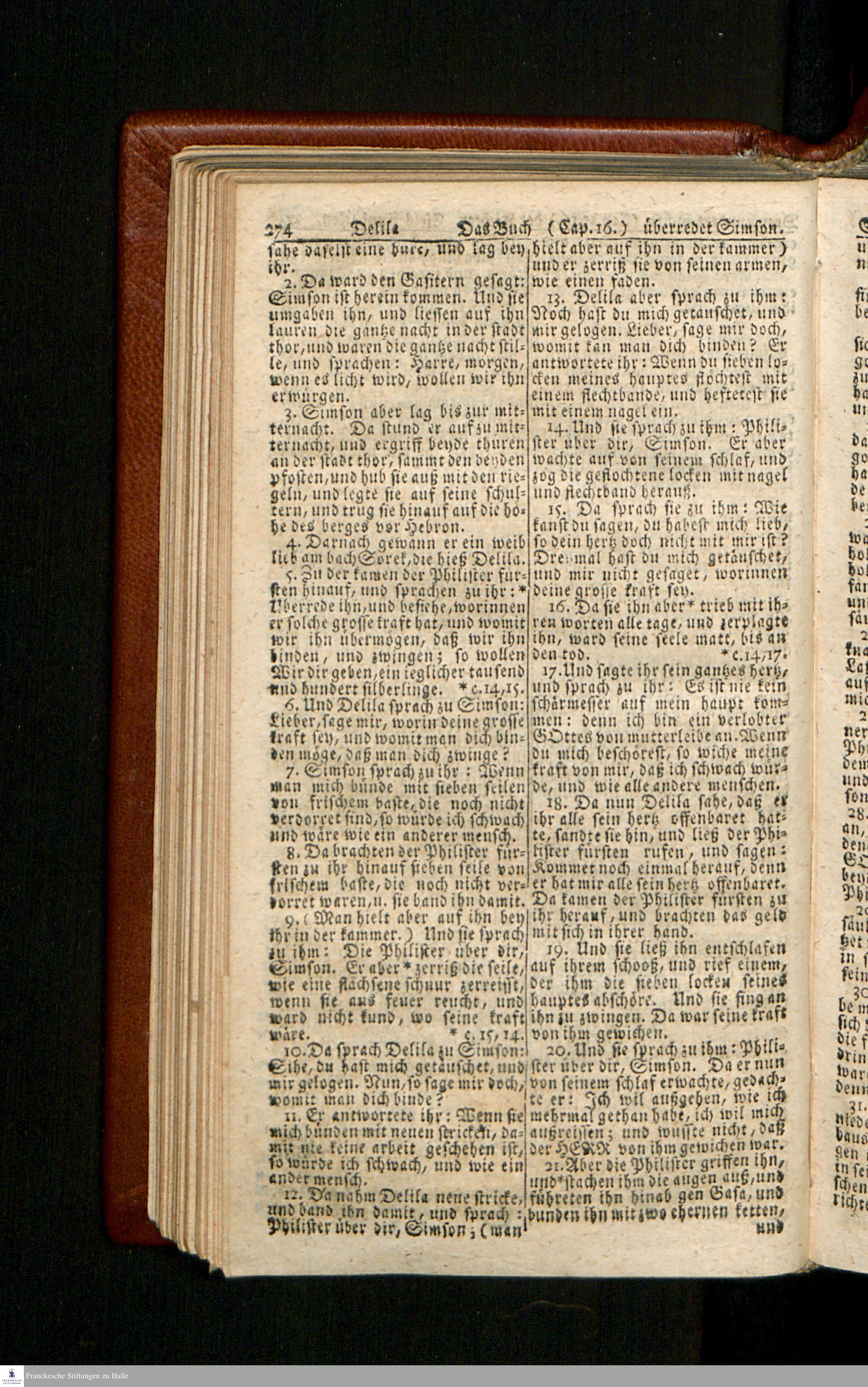 Biblia, Das ist: Die gantze Heil. Schrift Altes und Neues Testaments / Nach der Teutschen Ubersetzung D. Martin Luthers; Mit iedes Capitels kurtzen Summarien/ und nöthigsten Parallelen; Mit Fleiß übersehen, Und gegen einige/ sonderlich erstere/ Editiones des sel. Mannes gehalten, auch an unterschiedlichen Orten nach denselben eingerichtet, und von vielen in den bisherigen Exemplarien hin und wieder eingeschlichenen druckfehlern gesaubert. Nebst einer Vorrede Hn. Baron Carl Hildebrands v. Canstein.