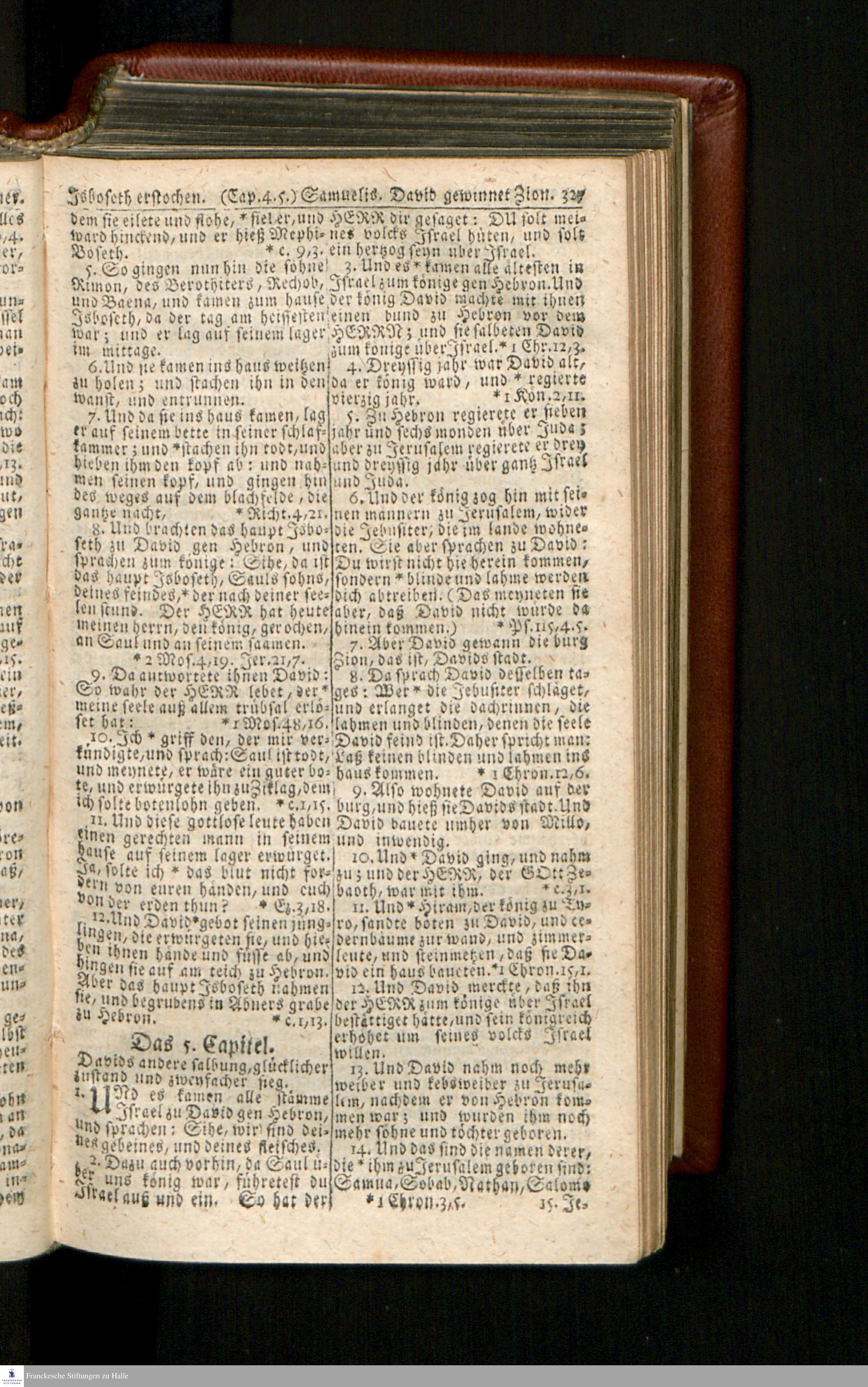 Biblia, Das ist: Die gantze Heil. Schrift Altes und Neues Testaments / Nach der Teutschen Ubersetzung D. Martin Luthers; Mit iedes Capitels kurtzen Summarien/ und nöthigsten Parallelen; Mit Fleiß übersehen, Und gegen einige/ sonderlich erstere/ Editiones des sel. Mannes gehalten, auch an unterschiedlichen Orten nach denselben eingerichtet, und von vielen in den bisherigen Exemplarien hin und wieder eingeschlichenen druckfehlern gesaubert. Nebst einer Vorrede Hn. Baron Carl Hildebrands v. Canstein.