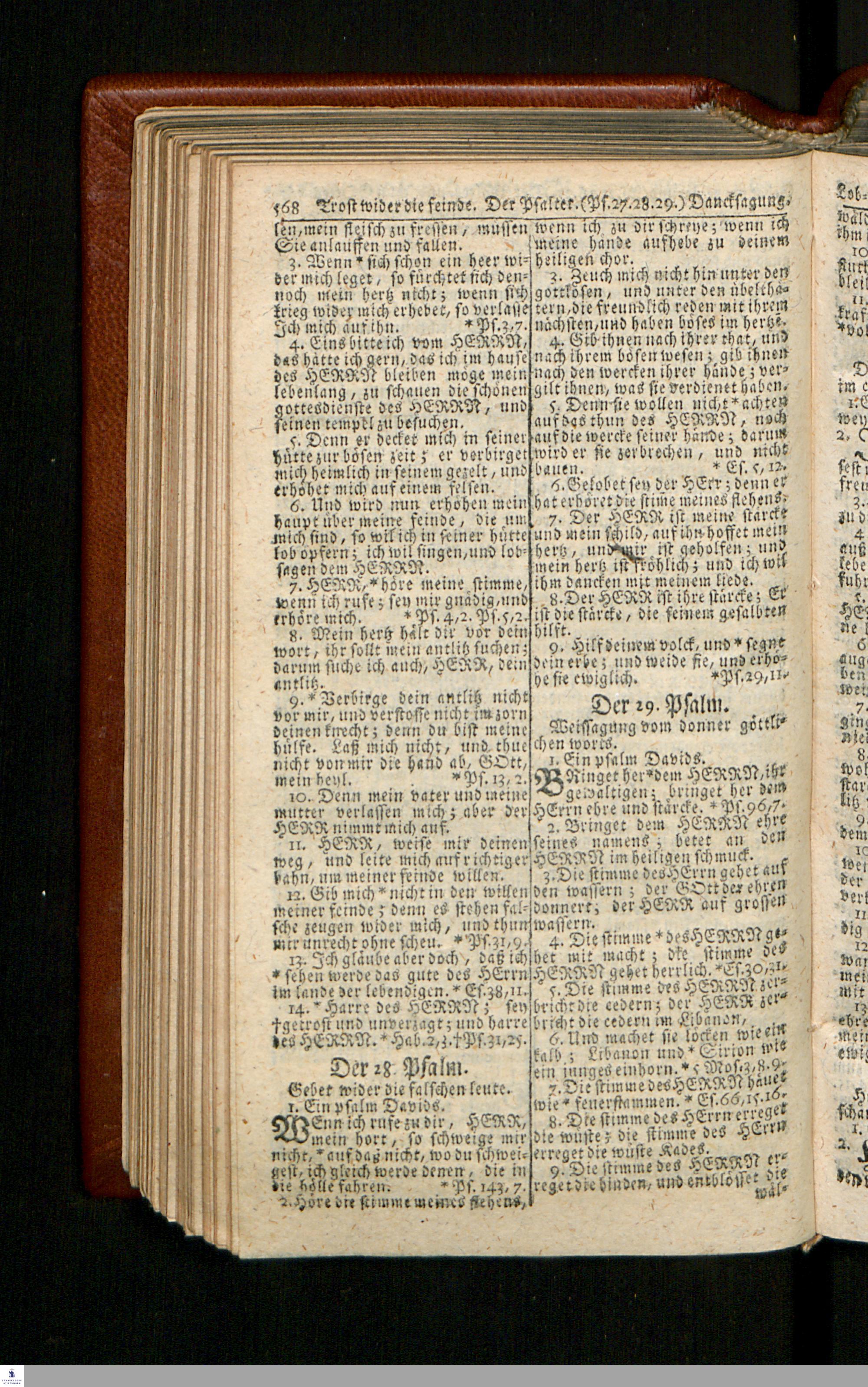 Biblia, Das ist: Die gantze Heil. Schrift Altes und Neues Testaments / Nach der Teutschen Ubersetzung D. Martin Luthers; Mit iedes Capitels kurtzen Summarien/ und nöthigsten Parallelen; Mit Fleiß übersehen, Und gegen einige/ sonderlich erstere/ Editiones des sel. Mannes gehalten, auch an unterschiedlichen Orten nach denselben eingerichtet, und von vielen in den bisherigen Exemplarien hin und wieder eingeschlichenen druckfehlern gesaubert. Nebst einer Vorrede Hn. Baron Carl Hildebrands v. Canstein.