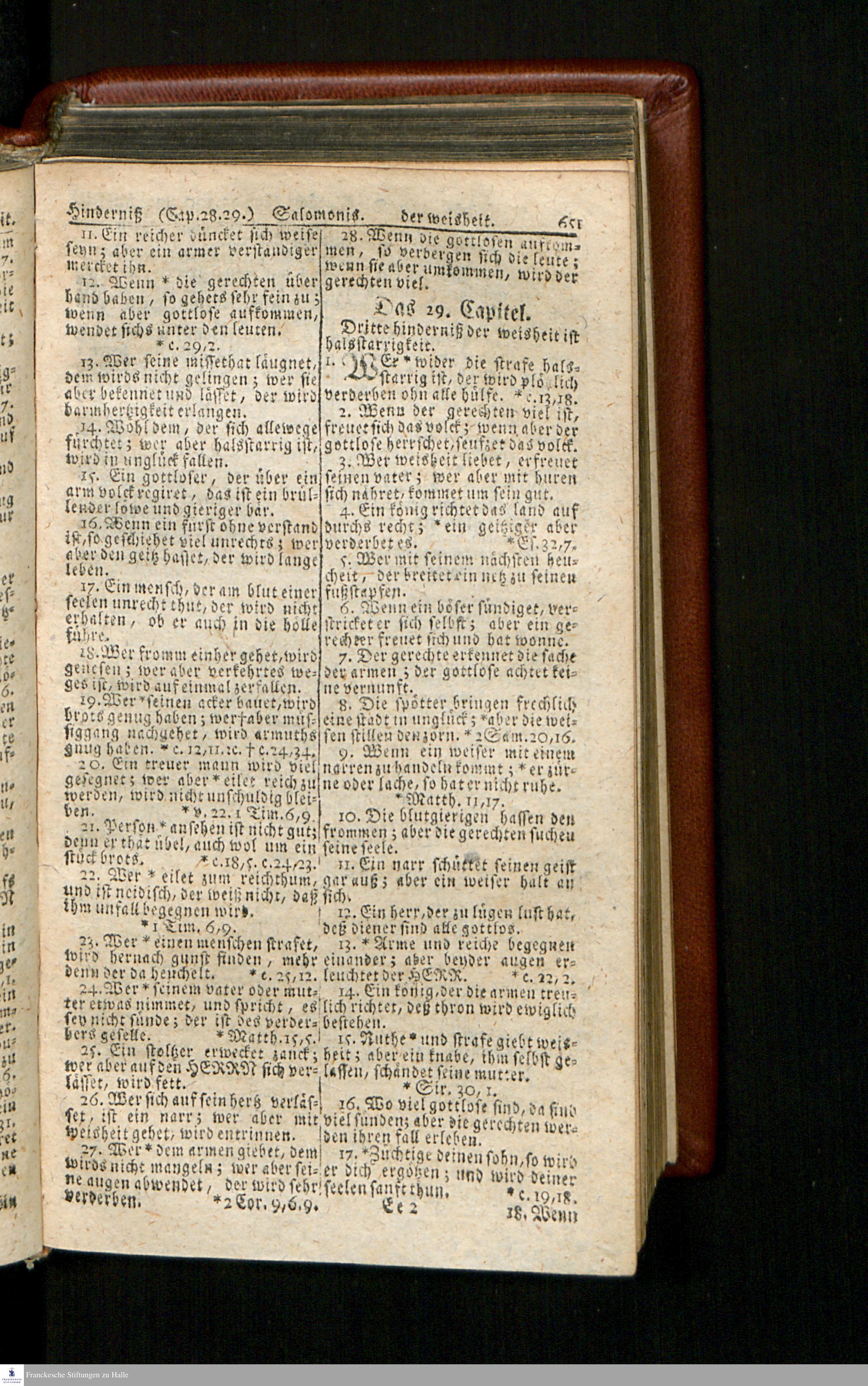 Biblia, Das ist: Die gantze Heil. Schrift Altes und Neues Testaments / Nach der Teutschen Ubersetzung D. Martin Luthers; Mit iedes Capitels kurtzen Summarien/ und nöthigsten Parallelen; Mit Fleiß übersehen, Und gegen einige/ sonderlich erstere/ Editiones des sel. Mannes gehalten, auch an unterschiedlichen Orten nach denselben eingerichtet, und von vielen in den bisherigen Exemplarien hin und wieder eingeschlichenen druckfehlern gesaubert. Nebst einer Vorrede Hn. Baron Carl Hildebrands v. Canstein.