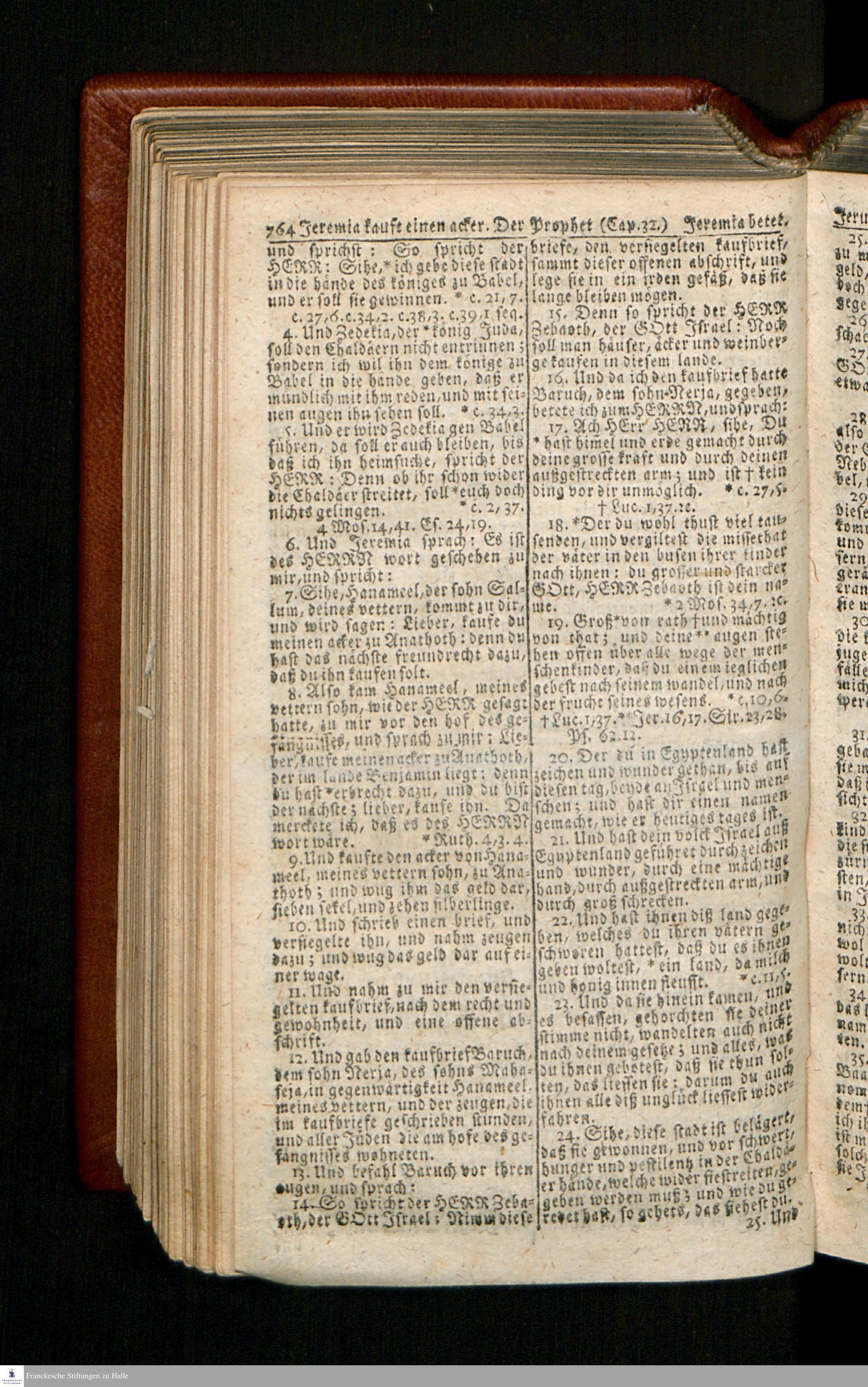 Biblia, Das ist: Die gantze Heil. Schrift Altes und Neues Testaments / Nach der Teutschen Ubersetzung D. Martin Luthers; Mit iedes Capitels kurtzen Summarien/ und nöthigsten Parallelen; Mit Fleiß übersehen, Und gegen einige/ sonderlich erstere/ Editiones des sel. Mannes gehalten, auch an unterschiedlichen Orten nach denselben eingerichtet, und von vielen in den bisherigen Exemplarien hin und wieder eingeschlichenen druckfehlern gesaubert. Nebst einer Vorrede Hn. Baron Carl Hildebrands v. Canstein.