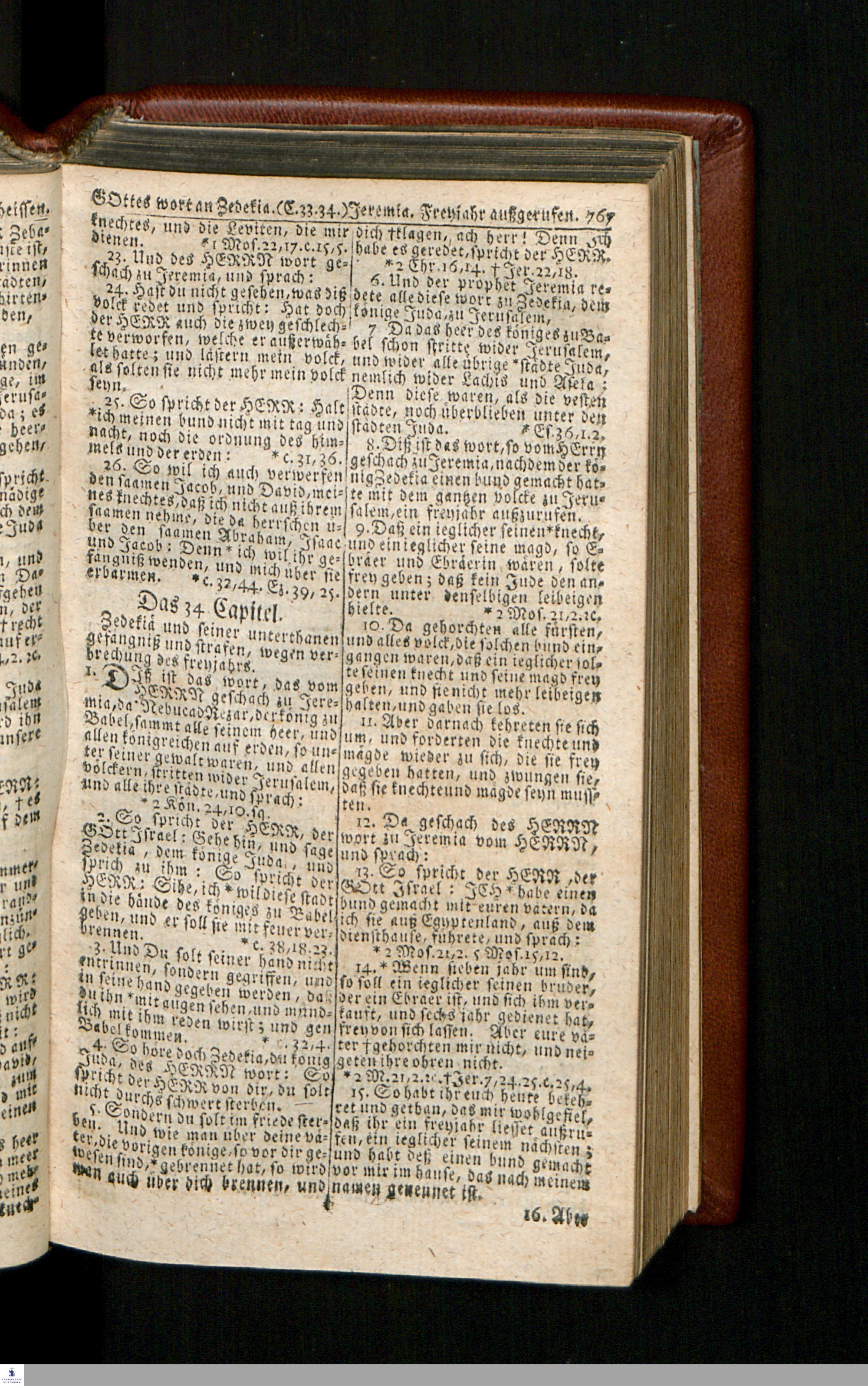 Biblia, Das ist: Die gantze Heil. Schrift Altes und Neues Testaments / Nach der Teutschen Ubersetzung D. Martin Luthers; Mit iedes Capitels kurtzen Summarien/ und nöthigsten Parallelen; Mit Fleiß übersehen, Und gegen einige/ sonderlich erstere/ Editiones des sel. Mannes gehalten, auch an unterschiedlichen Orten nach denselben eingerichtet, und von vielen in den bisherigen Exemplarien hin und wieder eingeschlichenen druckfehlern gesaubert. Nebst einer Vorrede Hn. Baron Carl Hildebrands v. Canstein.
