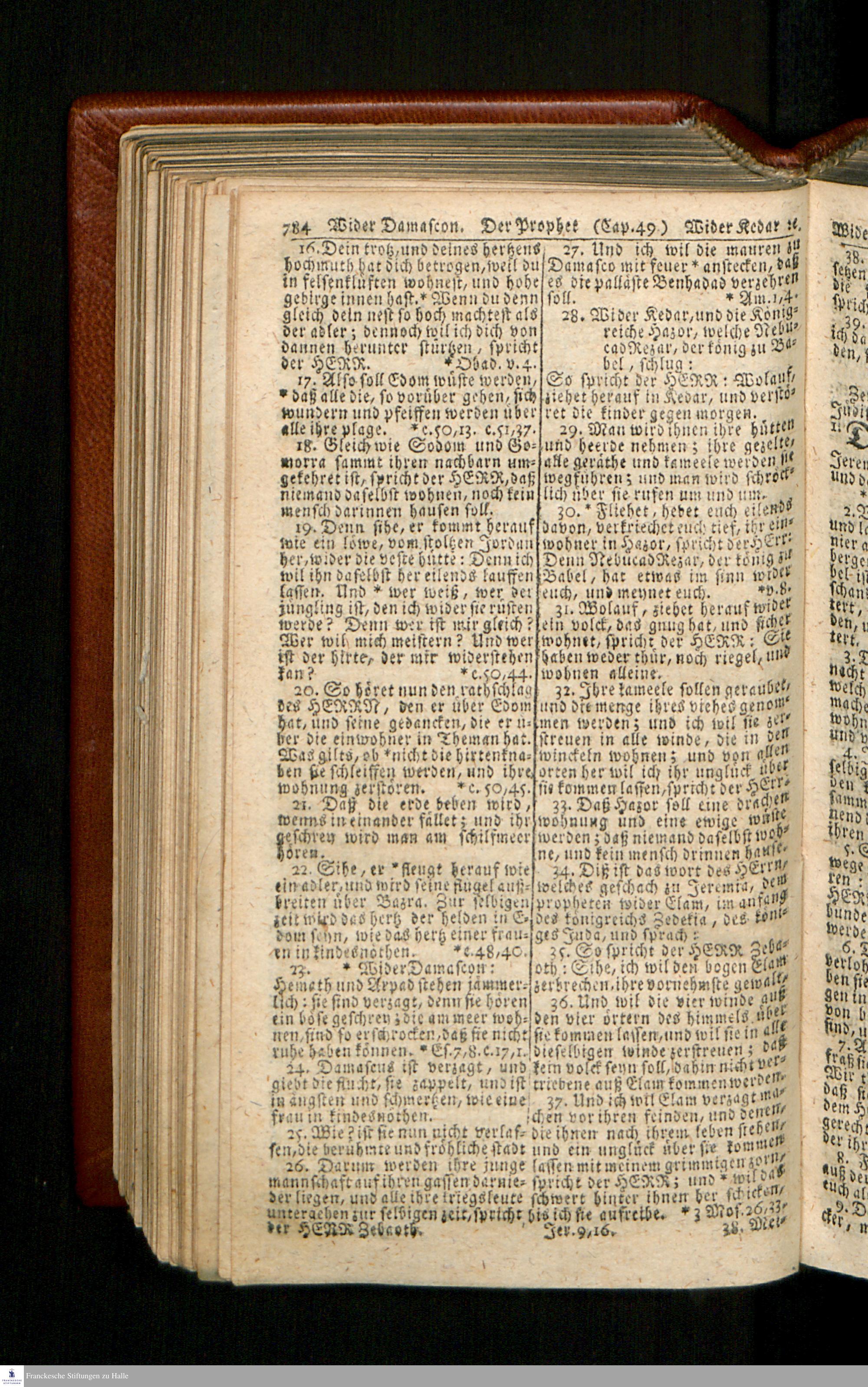 Biblia, Das ist: Die gantze Heil. Schrift Altes und Neues Testaments / Nach der Teutschen Ubersetzung D. Martin Luthers; Mit iedes Capitels kurtzen Summarien/ und nöthigsten Parallelen; Mit Fleiß übersehen, Und gegen einige/ sonderlich erstere/ Editiones des sel. Mannes gehalten, auch an unterschiedlichen Orten nach denselben eingerichtet, und von vielen in den bisherigen Exemplarien hin und wieder eingeschlichenen druckfehlern gesaubert. Nebst einer Vorrede Hn. Baron Carl Hildebrands v. Canstein.