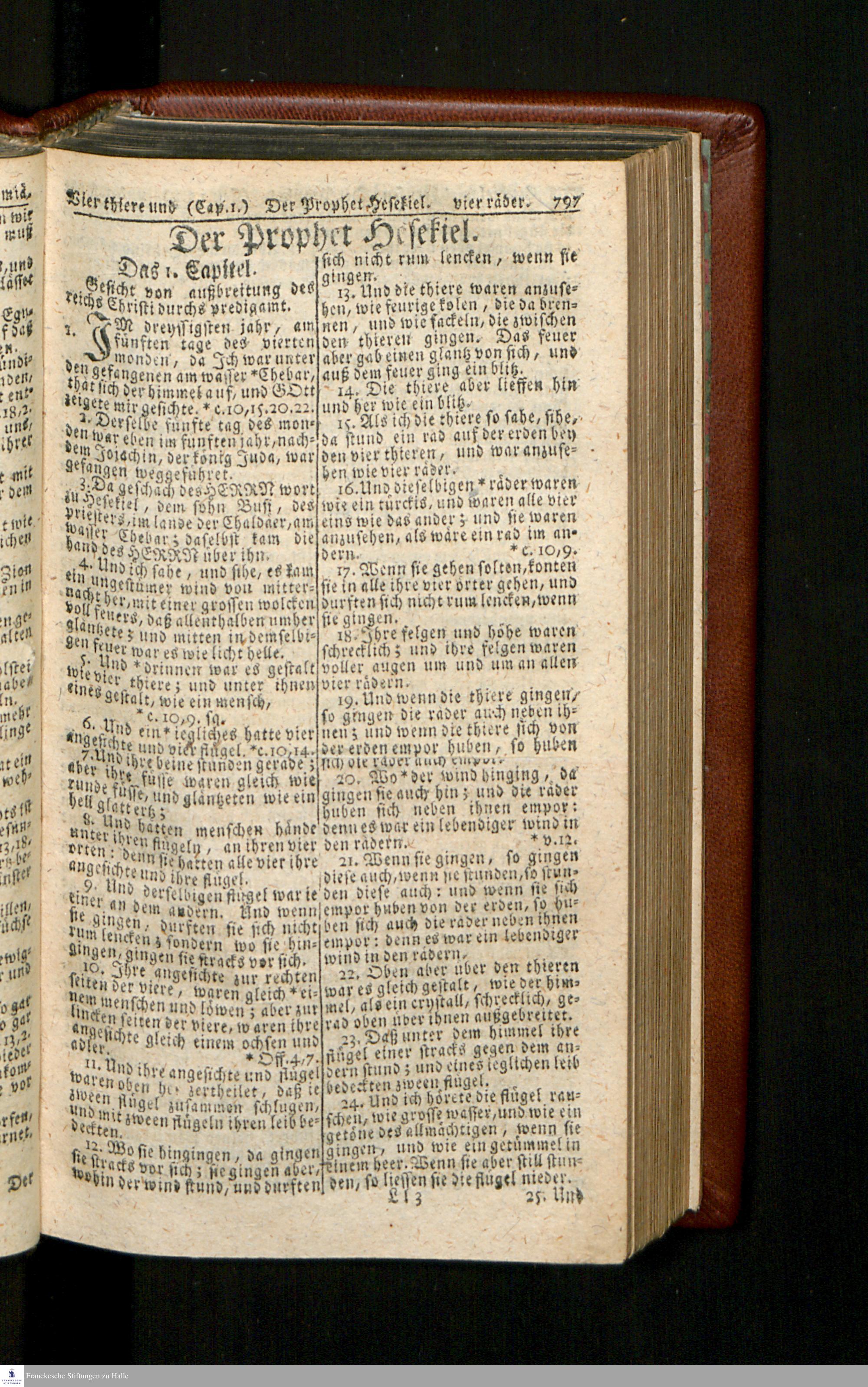 Biblia, Das ist: Die gantze Heil. Schrift Altes und Neues Testaments / Nach der Teutschen Ubersetzung D. Martin Luthers; Mit iedes Capitels kurtzen Summarien/ und nöthigsten Parallelen; Mit Fleiß übersehen, Und gegen einige/ sonderlich erstere/ Editiones des sel. Mannes gehalten, auch an unterschiedlichen Orten nach denselben eingerichtet, und von vielen in den bisherigen Exemplarien hin und wieder eingeschlichenen druckfehlern gesaubert. Nebst einer Vorrede Hn. Baron Carl Hildebrands v. Canstein.