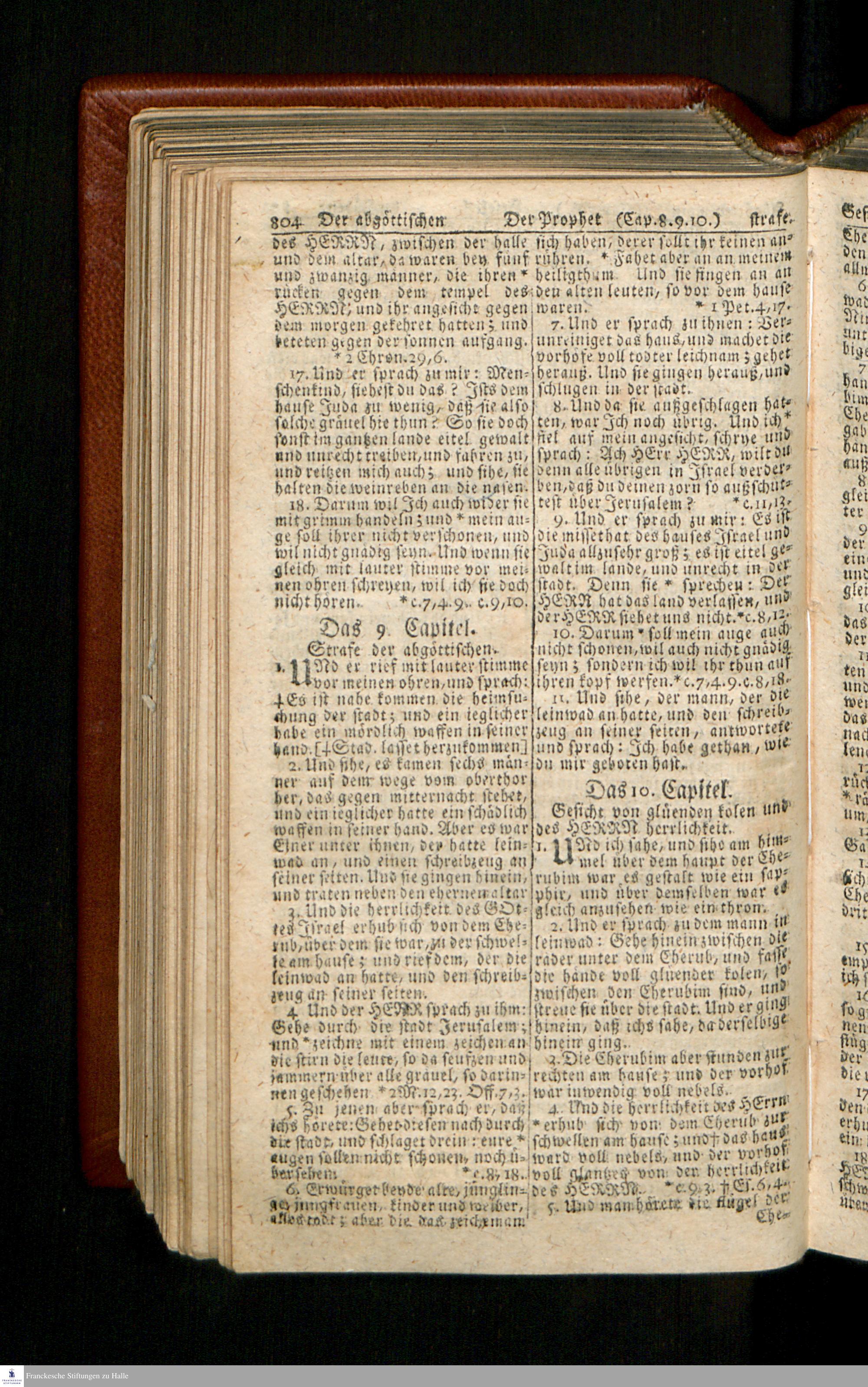 Biblia, Das ist: Die gantze Heil. Schrift Altes und Neues Testaments / Nach der Teutschen Ubersetzung D. Martin Luthers; Mit iedes Capitels kurtzen Summarien/ und nöthigsten Parallelen; Mit Fleiß übersehen, Und gegen einige/ sonderlich erstere/ Editiones des sel. Mannes gehalten, auch an unterschiedlichen Orten nach denselben eingerichtet, und von vielen in den bisherigen Exemplarien hin und wieder eingeschlichenen druckfehlern gesaubert. Nebst einer Vorrede Hn. Baron Carl Hildebrands v. Canstein.