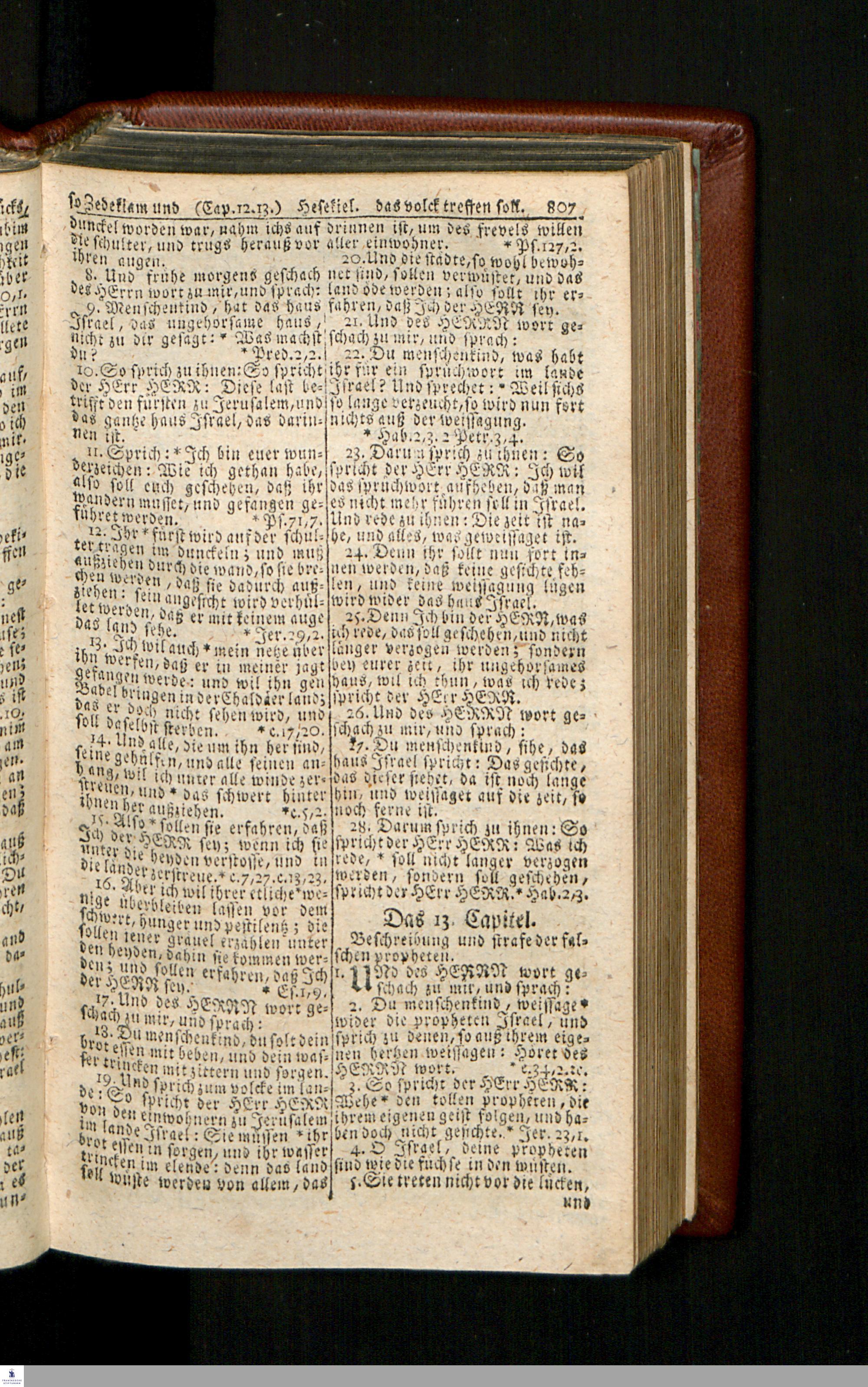 Biblia, Das ist: Die gantze Heil. Schrift Altes und Neues Testaments / Nach der Teutschen Ubersetzung D. Martin Luthers; Mit iedes Capitels kurtzen Summarien/ und nöthigsten Parallelen; Mit Fleiß übersehen, Und gegen einige/ sonderlich erstere/ Editiones des sel. Mannes gehalten, auch an unterschiedlichen Orten nach denselben eingerichtet, und von vielen in den bisherigen Exemplarien hin und wieder eingeschlichenen druckfehlern gesaubert. Nebst einer Vorrede Hn. Baron Carl Hildebrands v. Canstein.